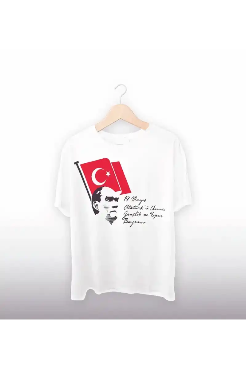 19 Mayıs Baskılı T-shirt - Beyaz