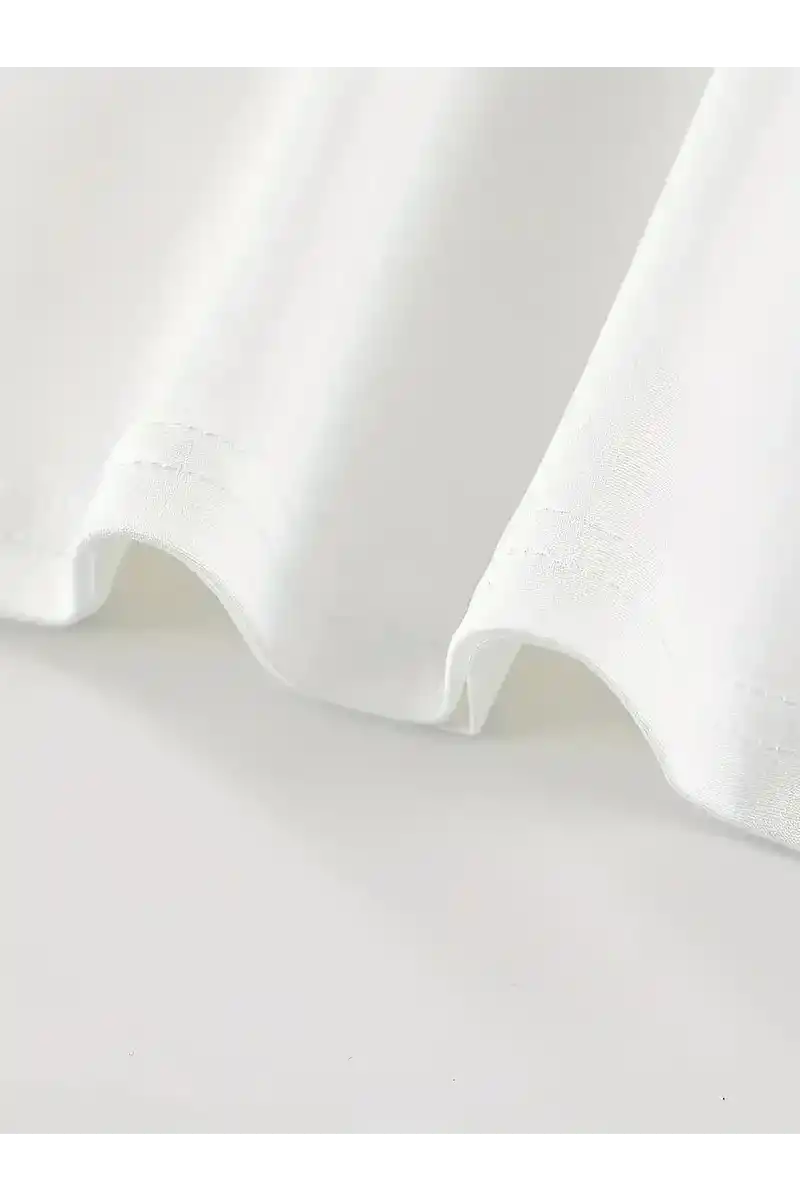 20/1 Penye Compack Baskılı Oversize Kısa Kol Bisiklet Yaka T-shirt - Beyaz