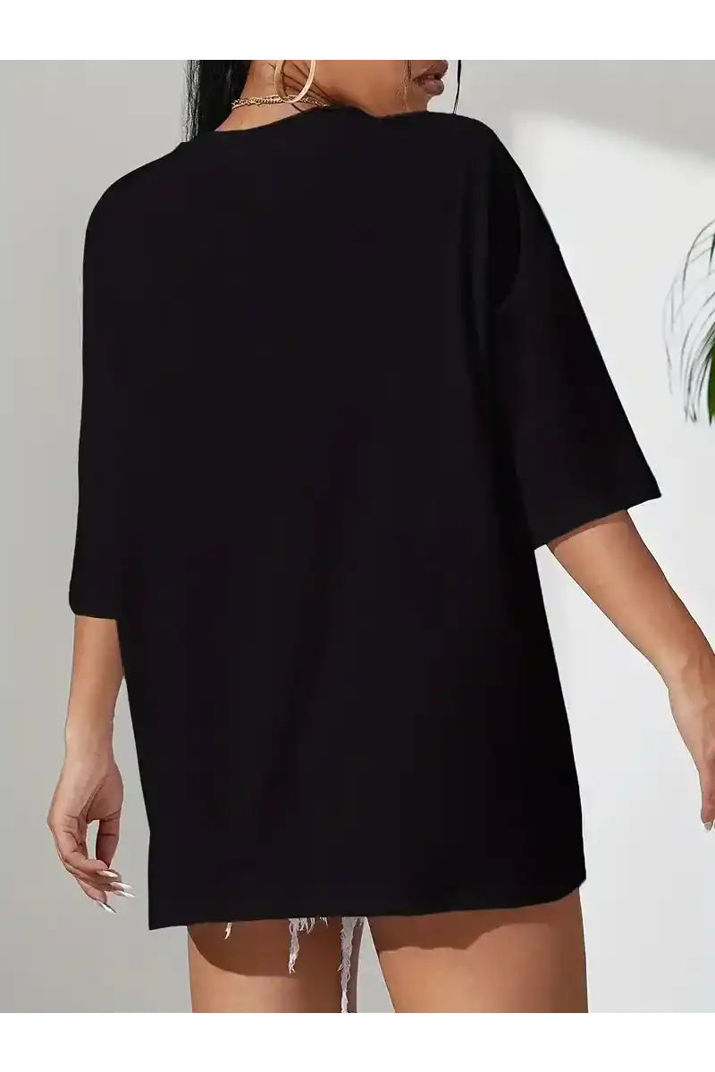 20/1 Penye Compack Classical Baskılı Siyah Oversize Tişort - Siyah