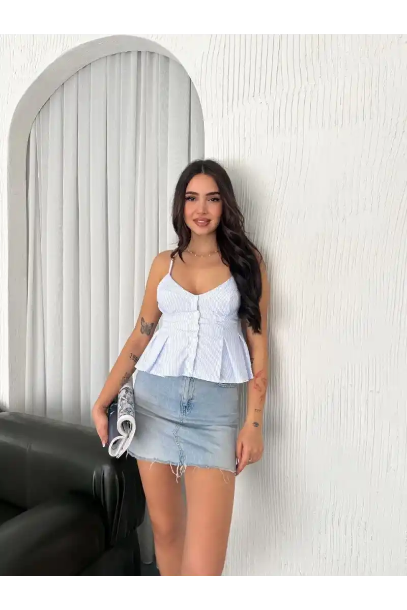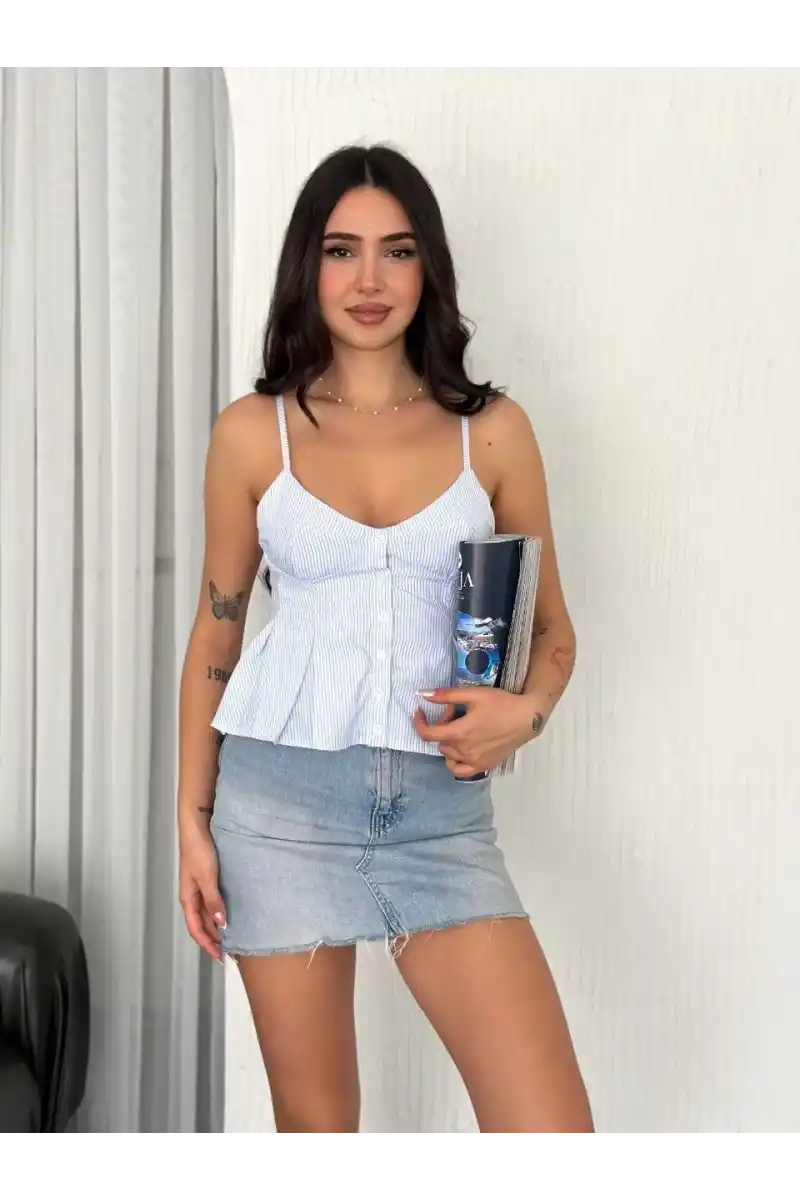 Askılı Dekolte detaylı crop - Açık Mavi