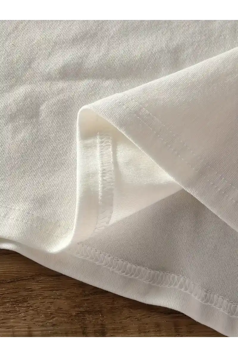 20/1 Penye Compack Baskılı Oversize Bisiklet Yaka Kısa Kol Yazlık T-shirt - Beyaz