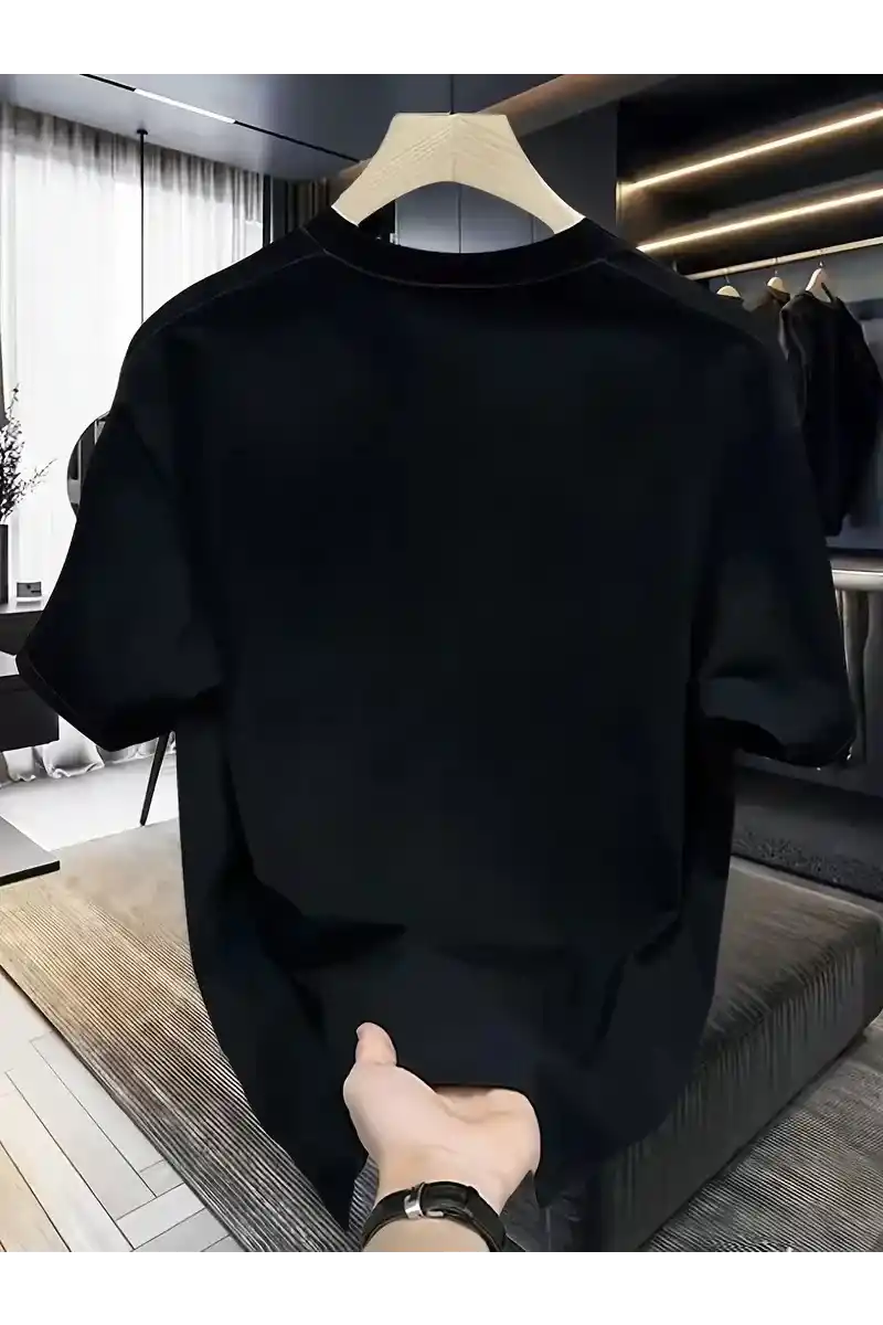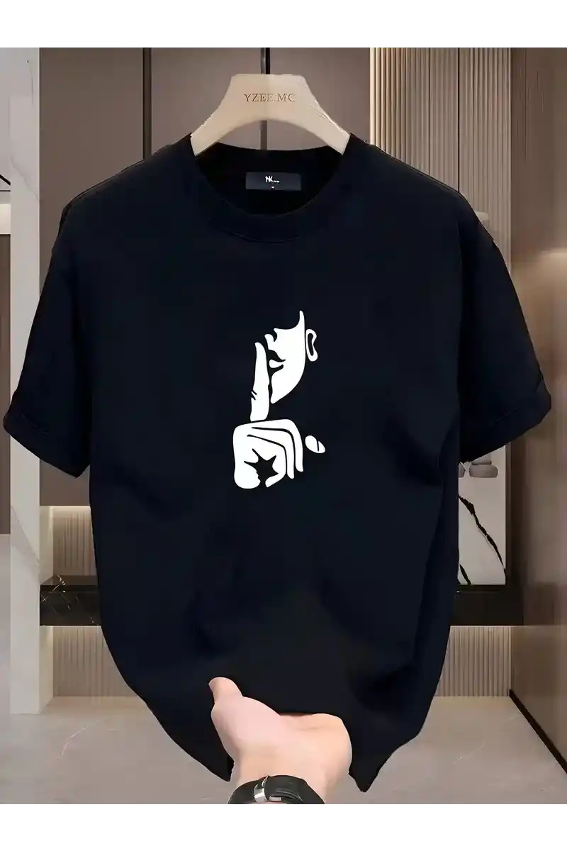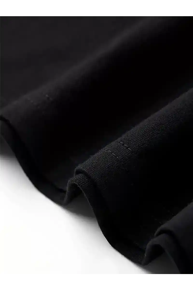 Rahat Bisiklet Yaka Tişört, Yaratıcı Karikatür Baskı - Yumuşak Polyester, Her Mevsim Giyilebilir- Siyah
