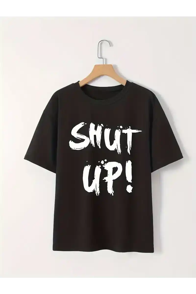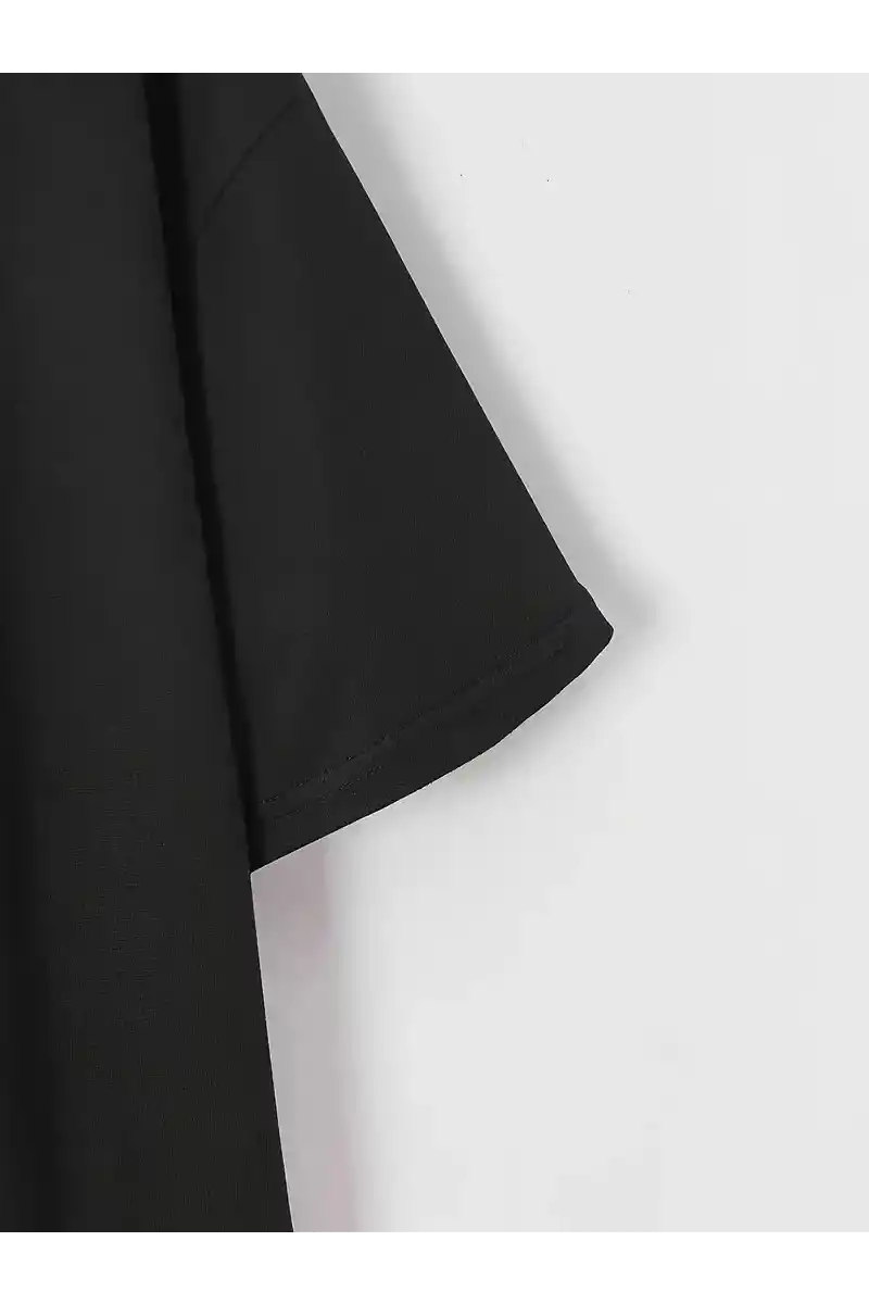 20/1 Penye Compack Baskılı Oversize Bisiklet Yaka m Kısa Kol Yazlık T-shirt - Siyah