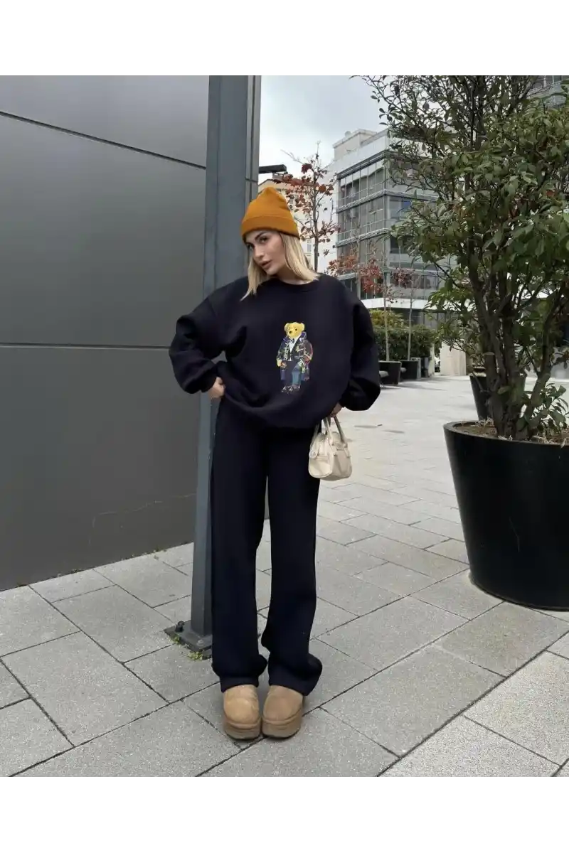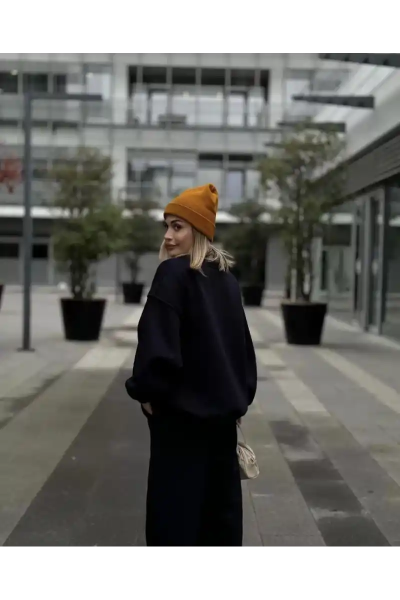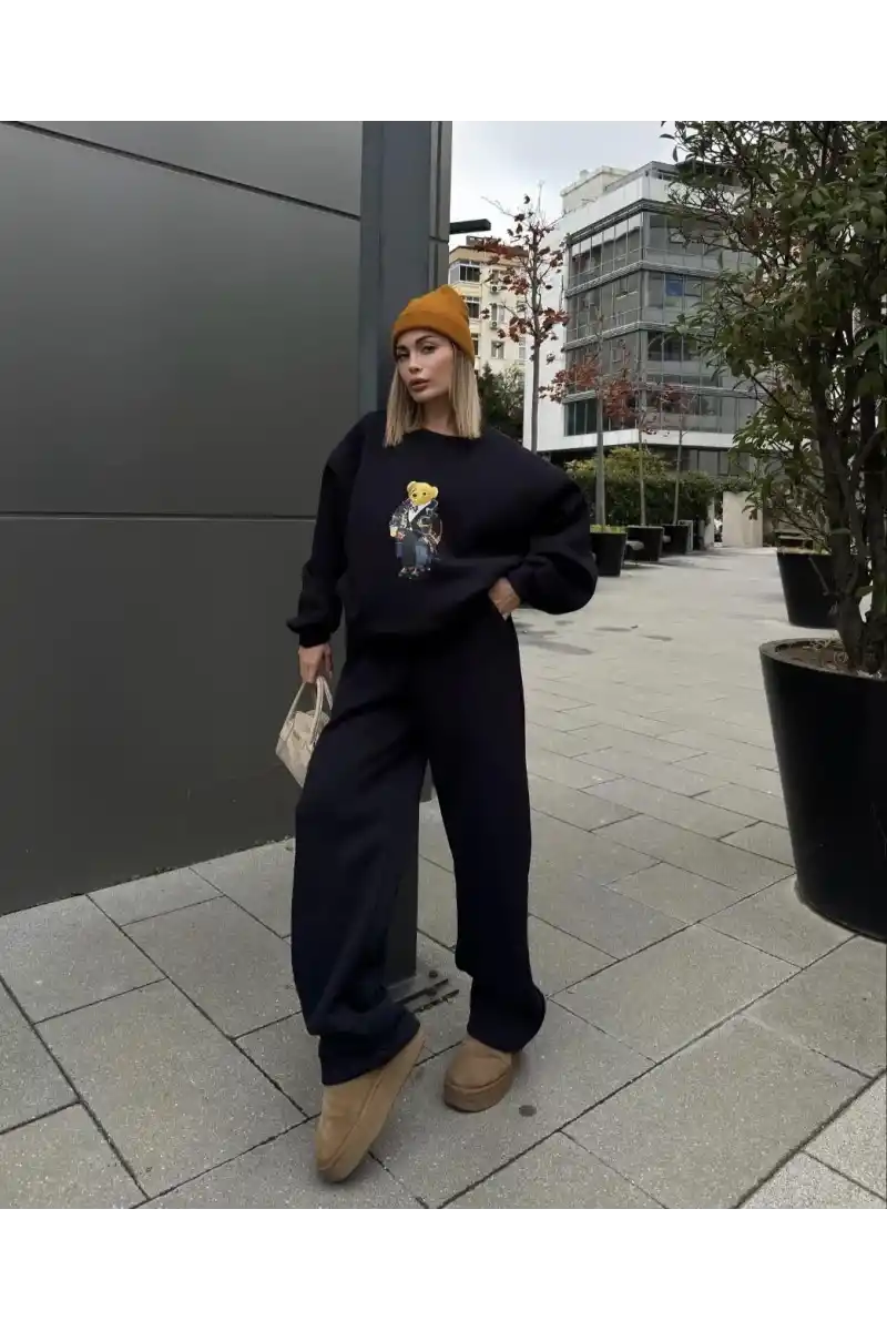 Bisiklet Yaka Üç İplik Sweat Takım - Siyah