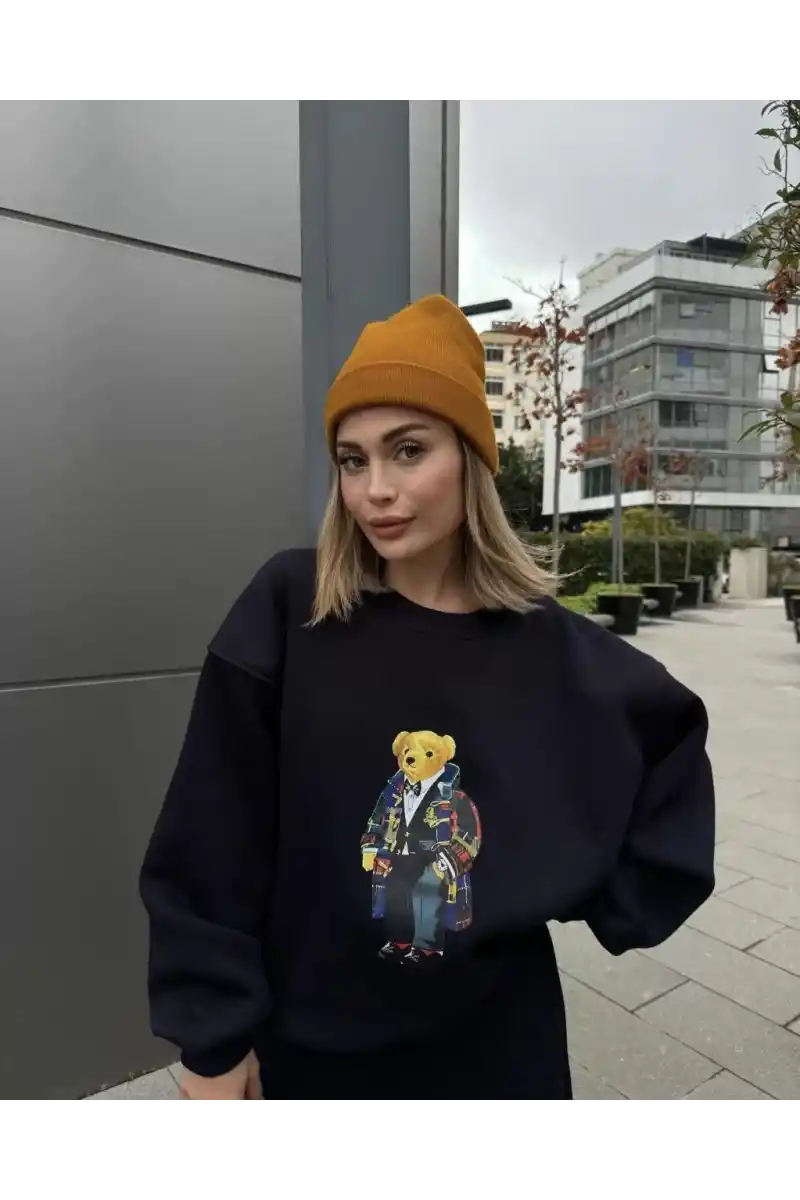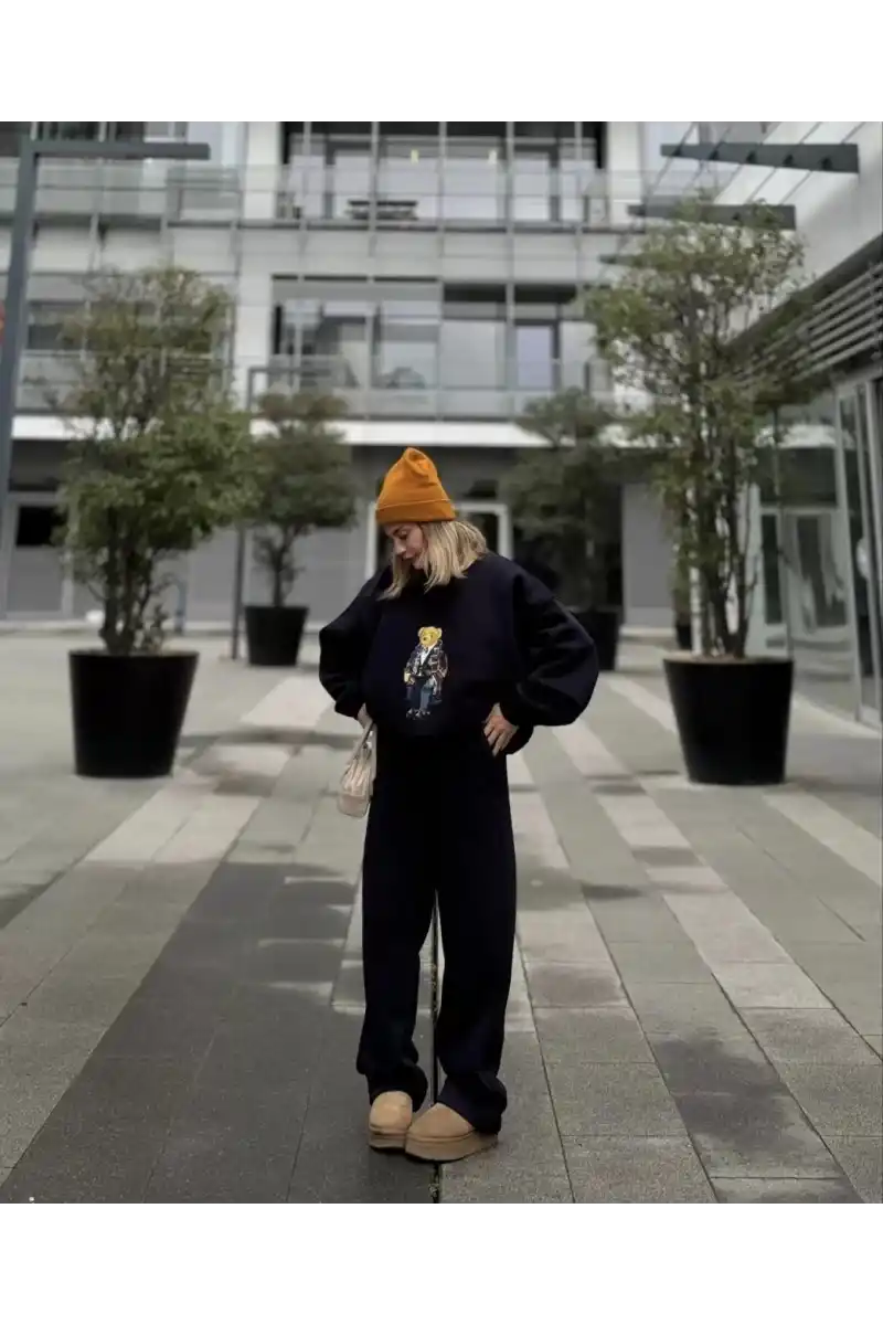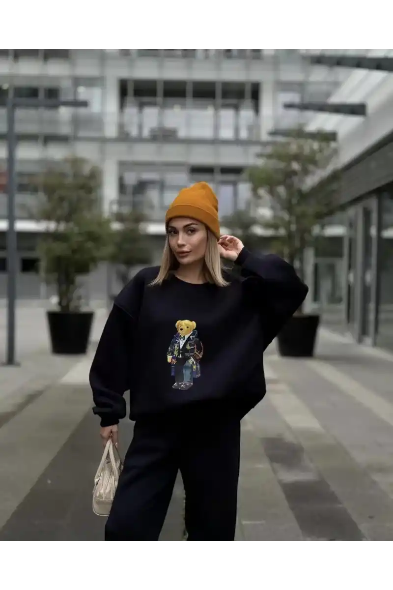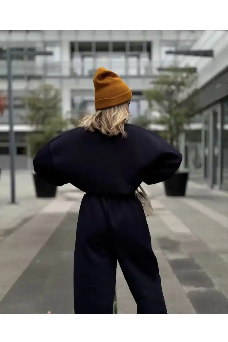 Bisiklet Yaka Üç İplik Sweat Takım - Siyah