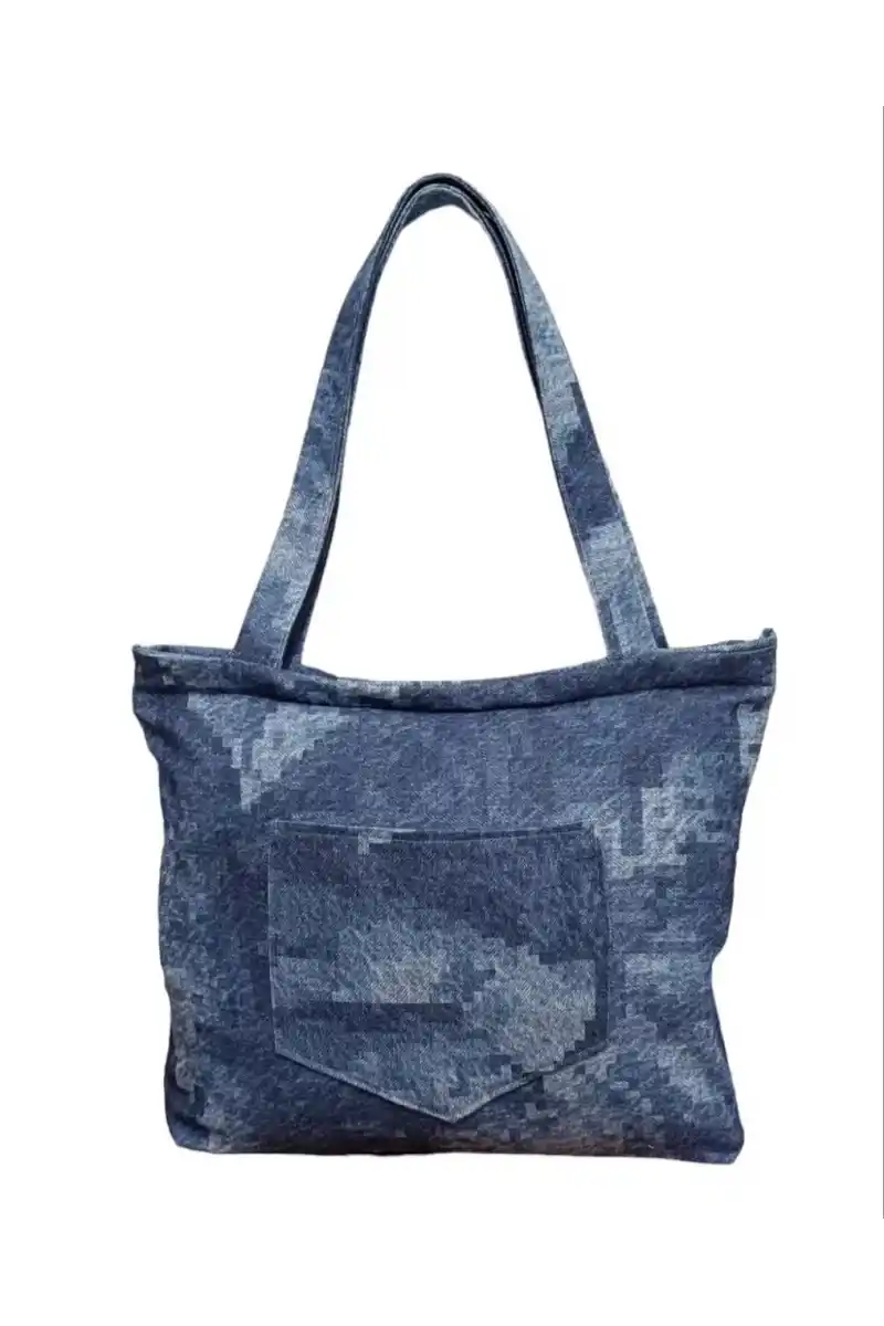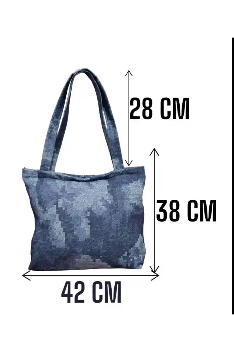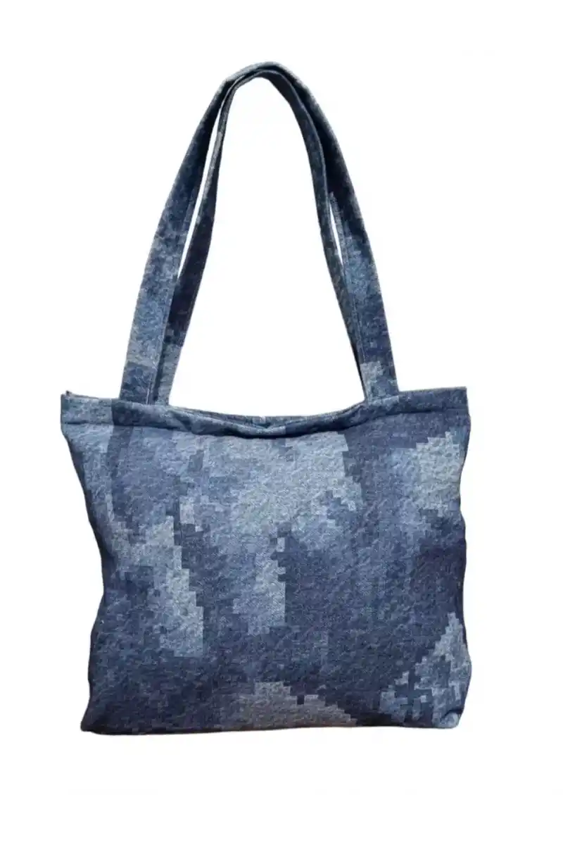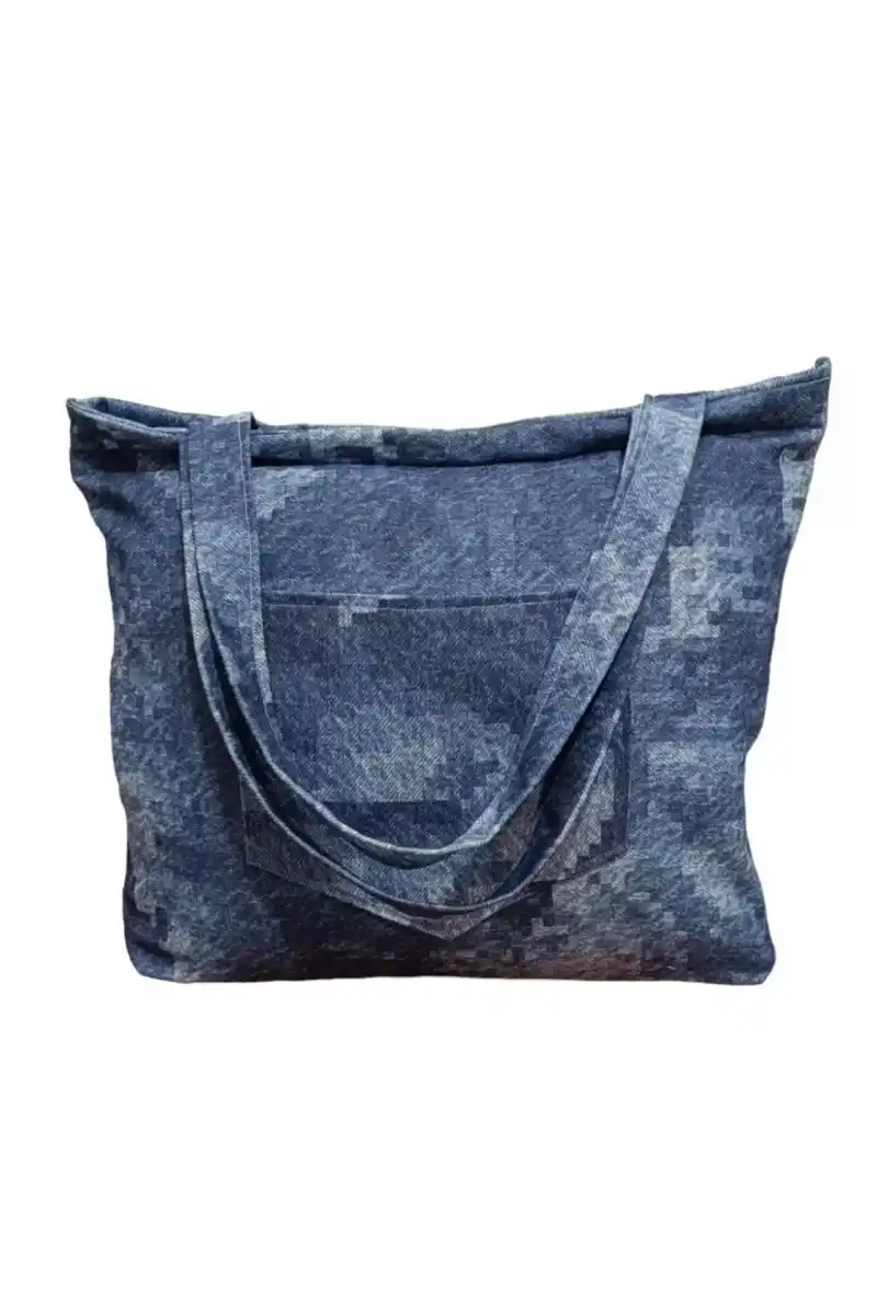 Blujin Desenli Piknik ve Deniz Cepli Fermuarlı Çanta - Mavi