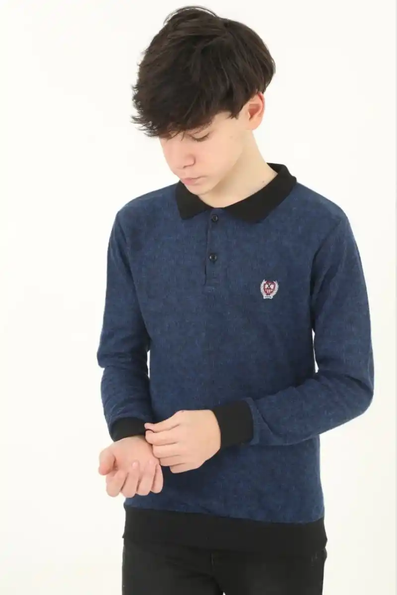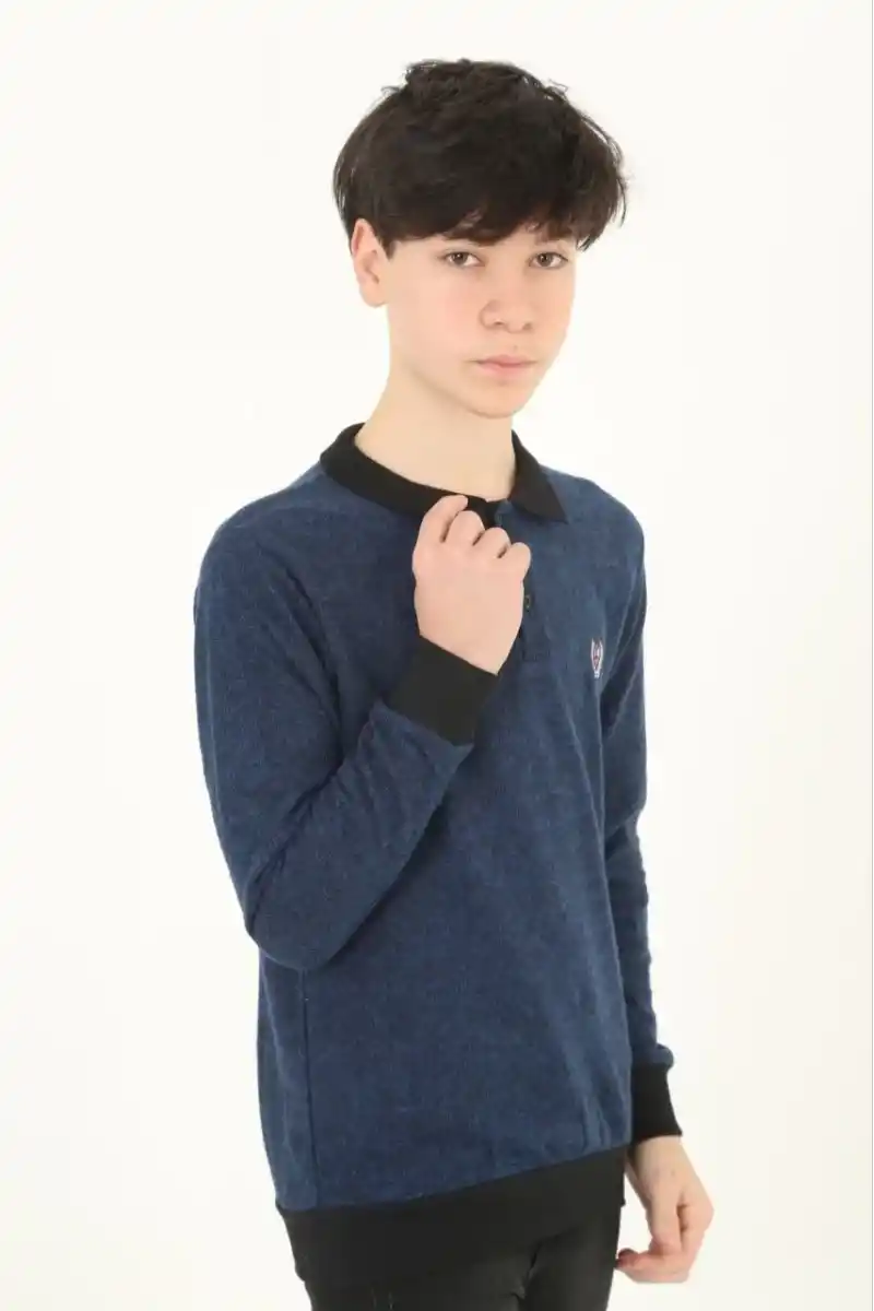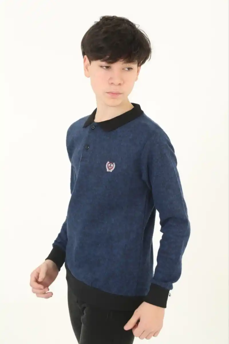 Çocuk Selanik Yaka Nakışlı Kazak - Lacivert