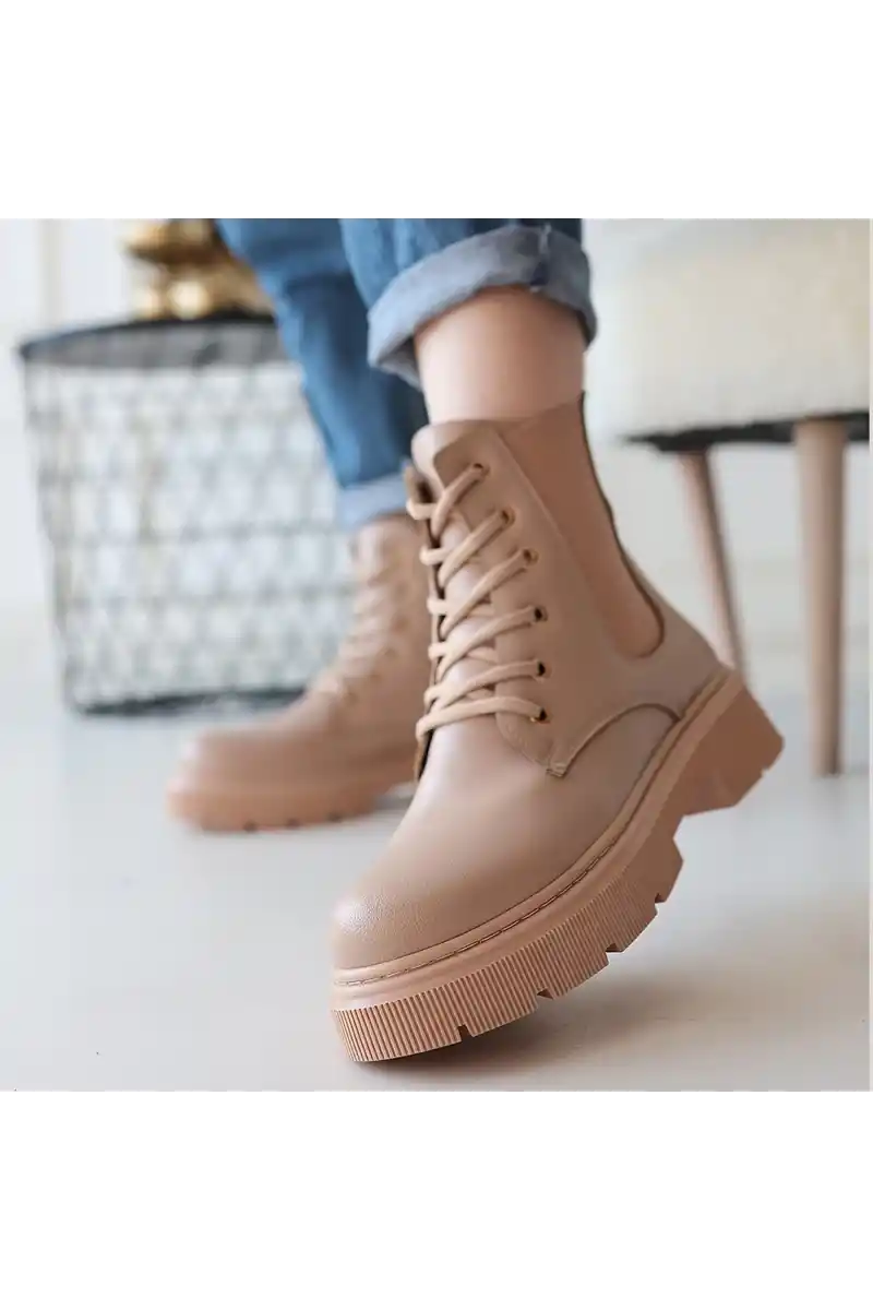 Detay : Topuklu Yandan Fermuarlı Lastikli Bağcıklı Bot