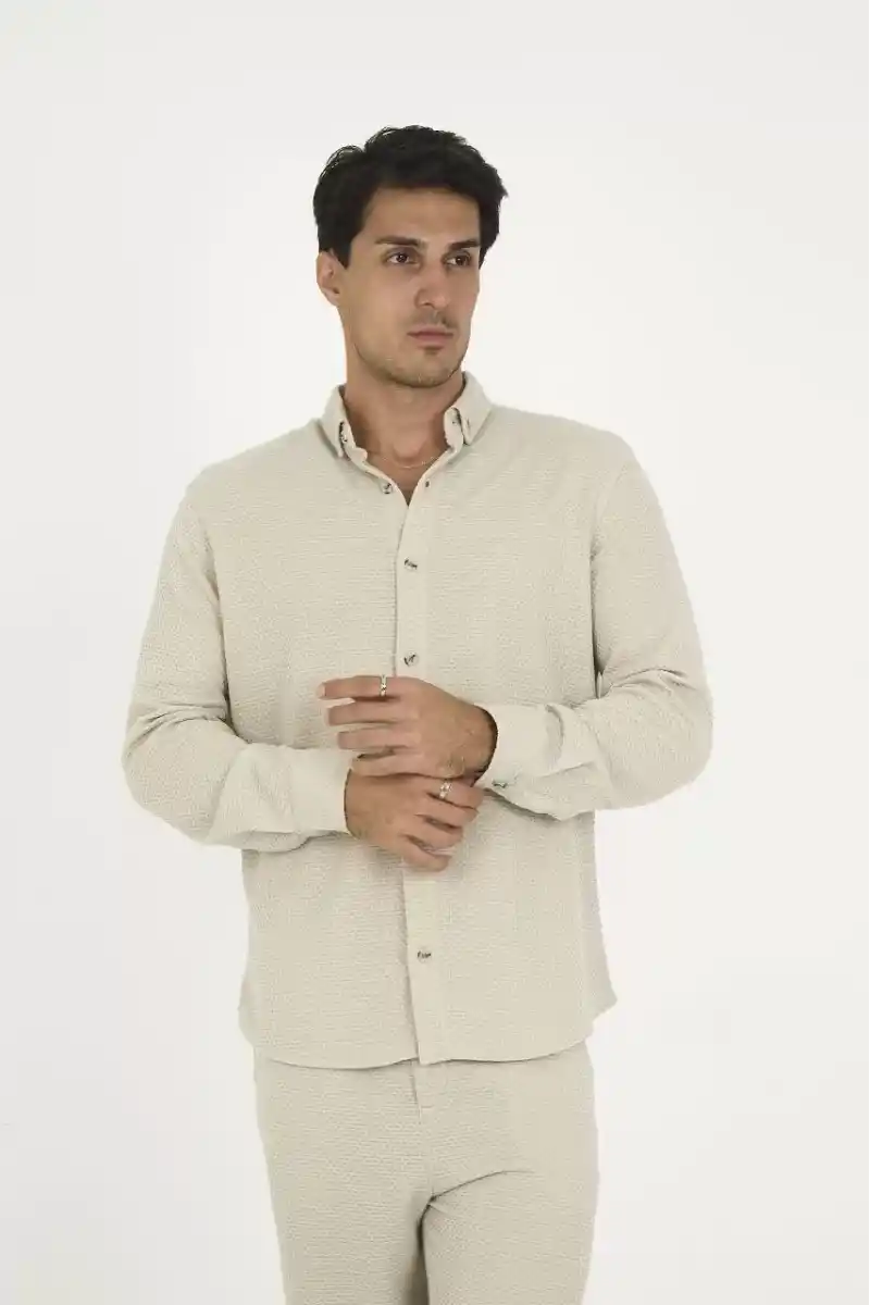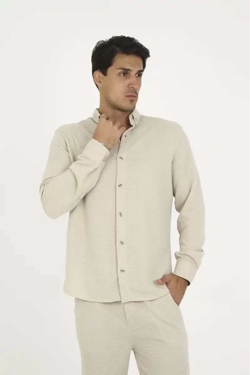 Düğmeli Tam Kalıp Uzun Kol Jakar Gömlek - Gri