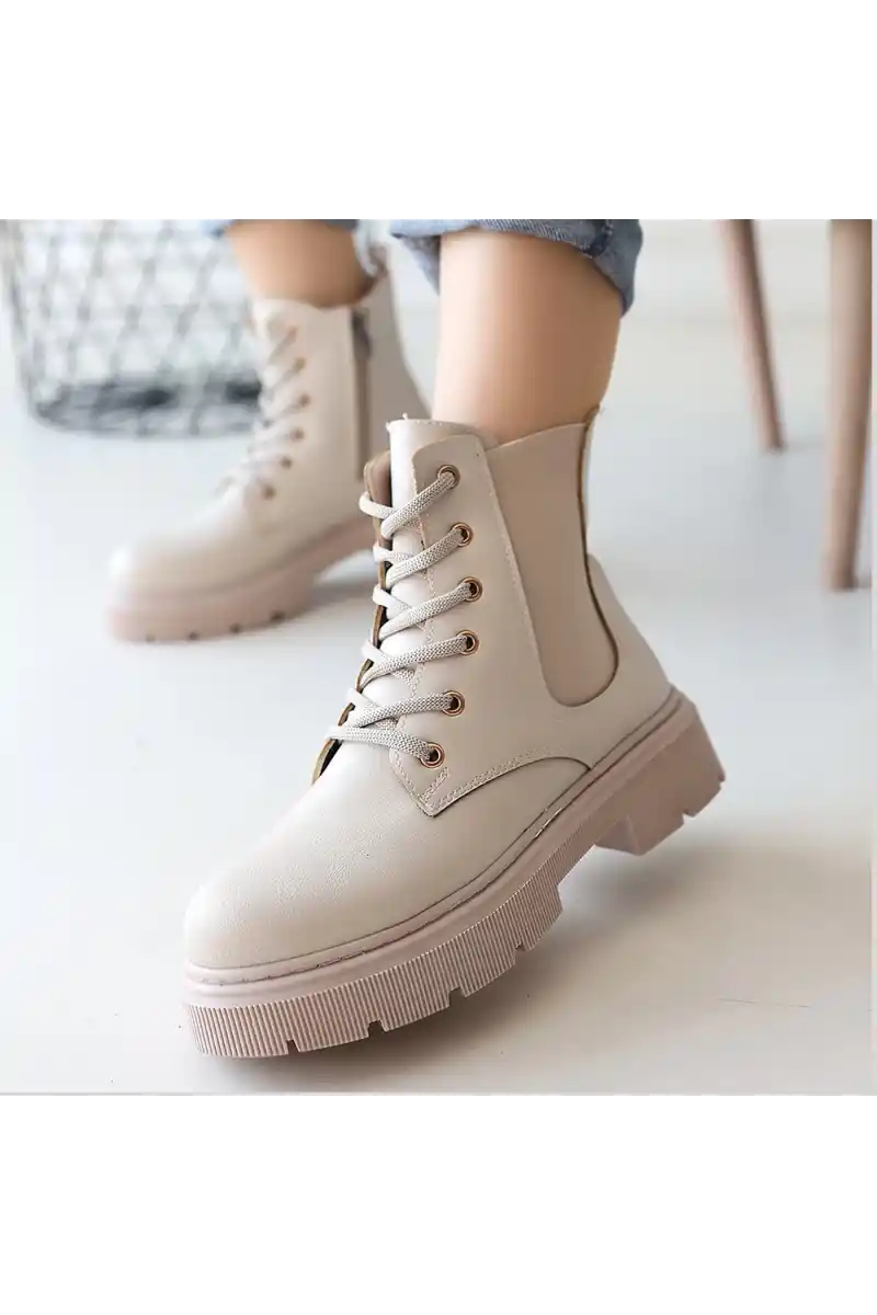Detay : Topuklu Yandan Fermuarlı Lastikli Bağcıklı Bot