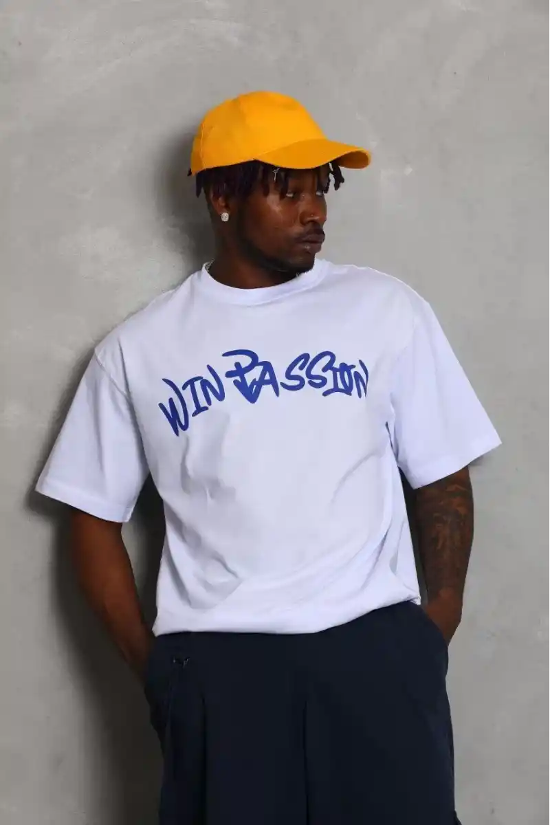 Unisex Oversize Baskılı Bisiklet Yaka T-Shirt - Beyaz
