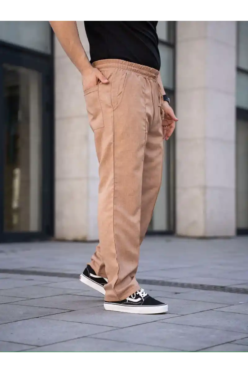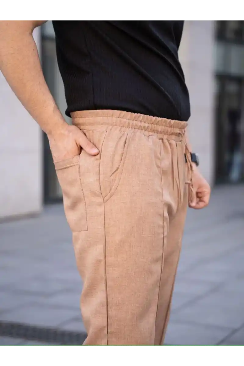 Erkek Keten Cepli Çıma Dikişli jogger Buggy Pantalon Rahat kalıp - Kahverengi