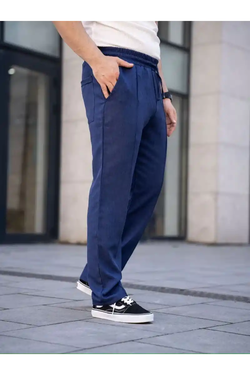 Erkek Keten Cepli Çıma Dikişli jogger Buggy Pantalon Rahat kalıp - Lacivert
