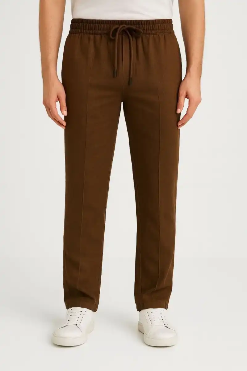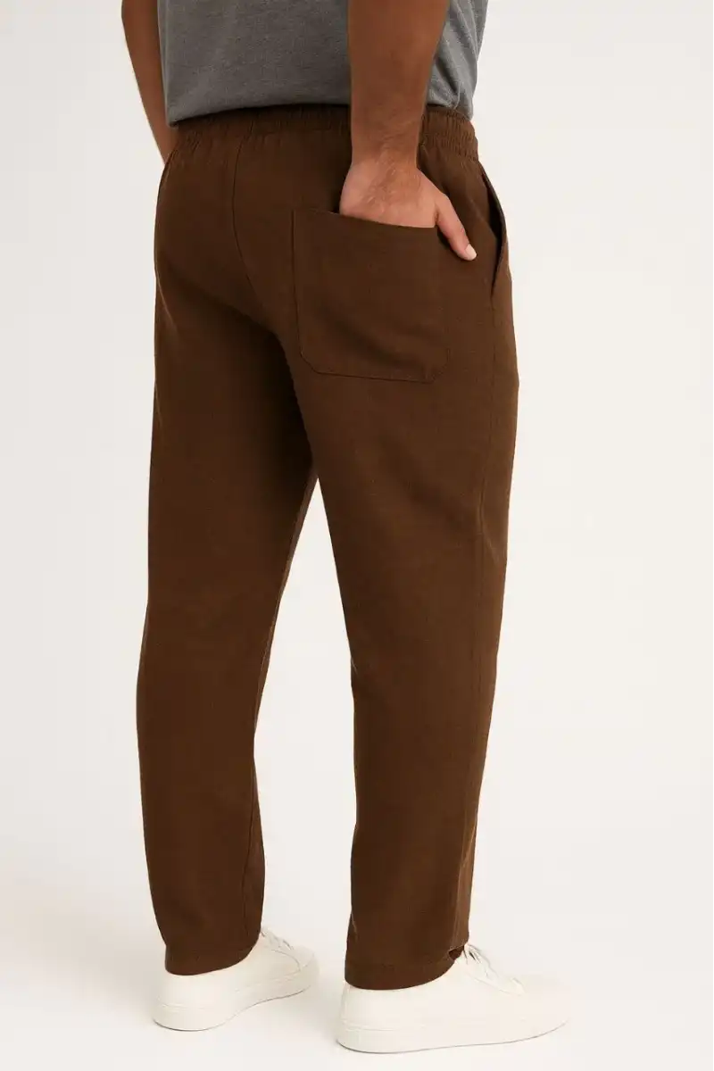 Erkek Keten Pantolon – Cepli, Beli Lastikli ve Bağcıklı, Nefes Alan Rahat Kalıp, Yazlık ve Baharlık Günlük Giyim, Şık & Konforlu Boru Paça Model - Kahverengi