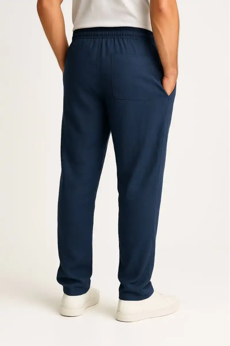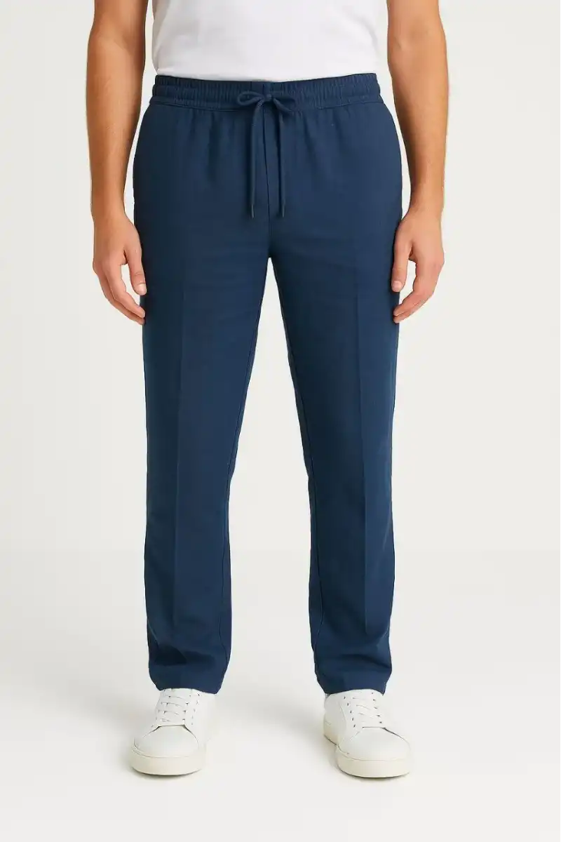Erkek Keten Pantolon – Cepli, Beli Lastikli ve Bağcıklı, Nefes Alan Rahat Kalıp, Yazlık ve Baharlık Günlük Giyim, Şık & Konforlu Boru Paça Model - Lacivert