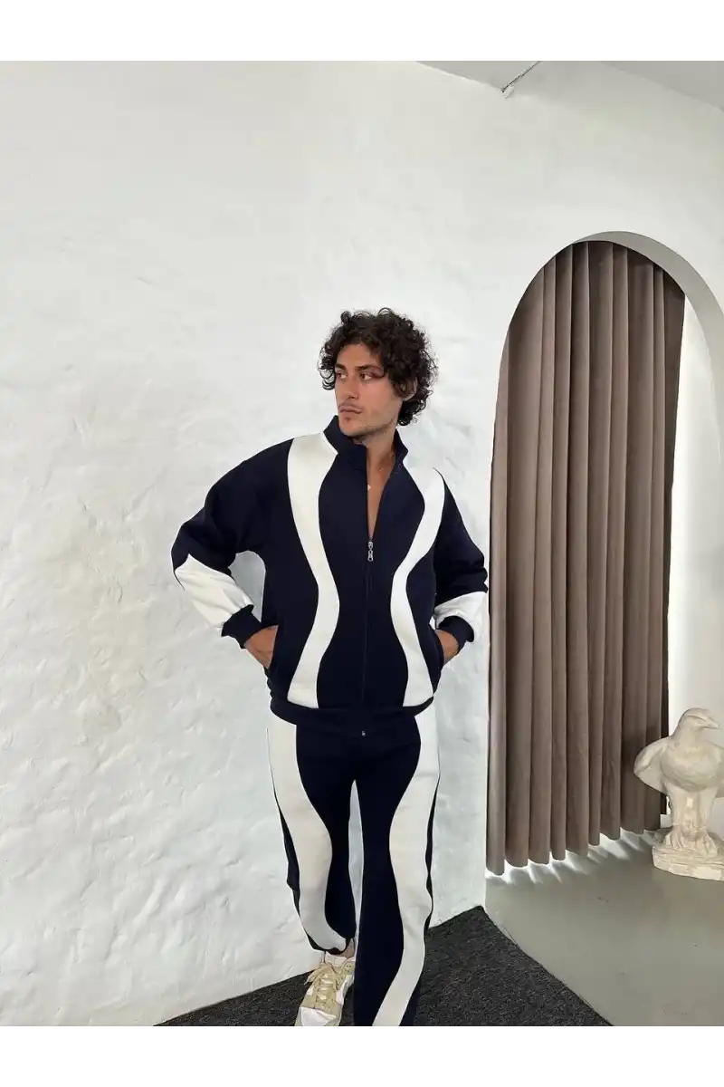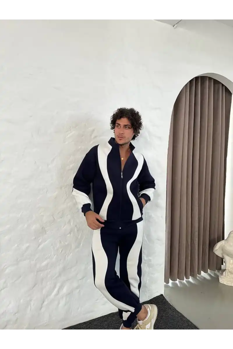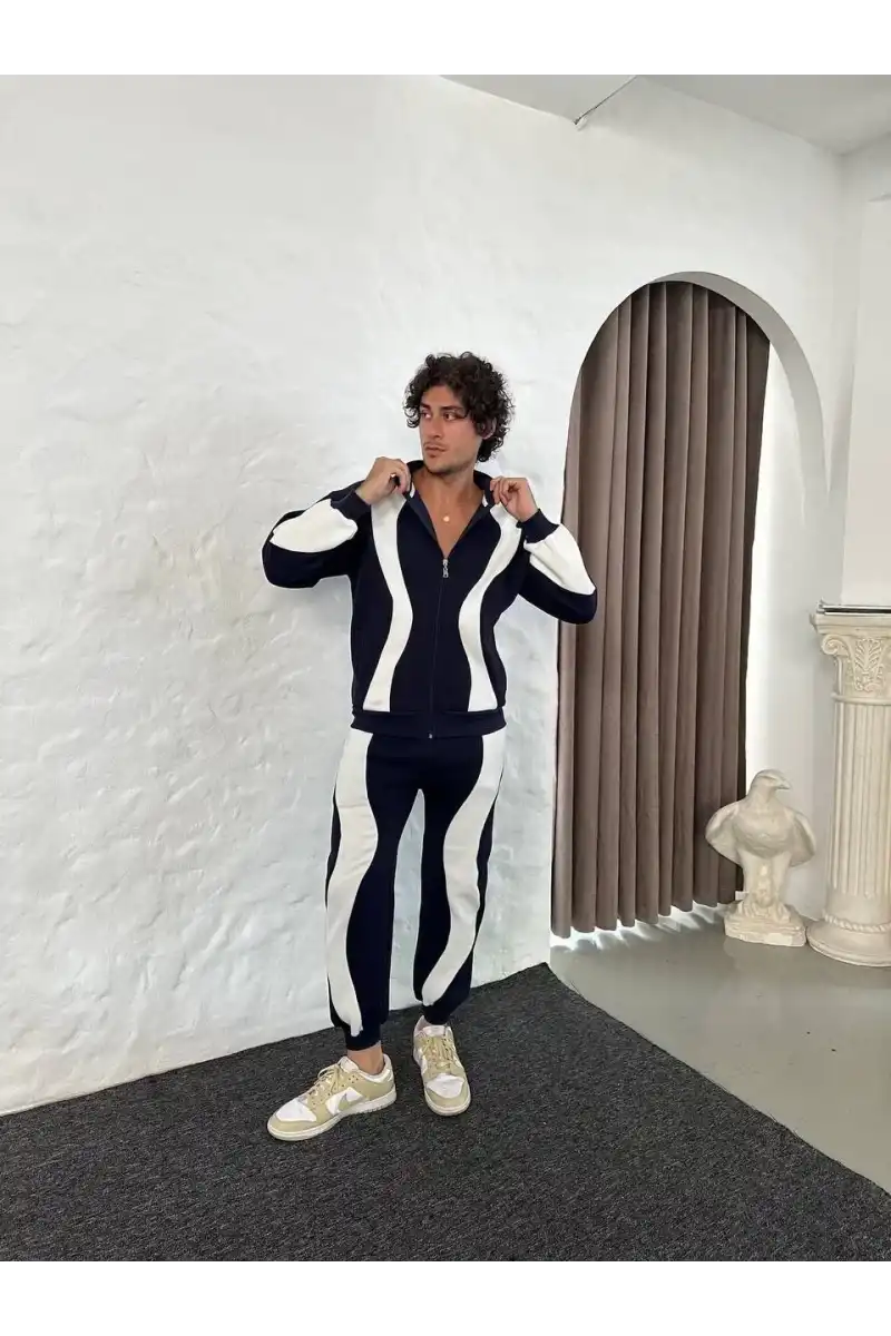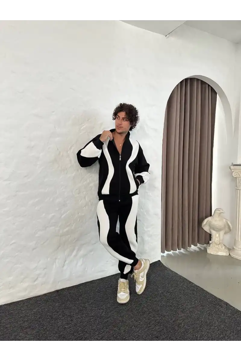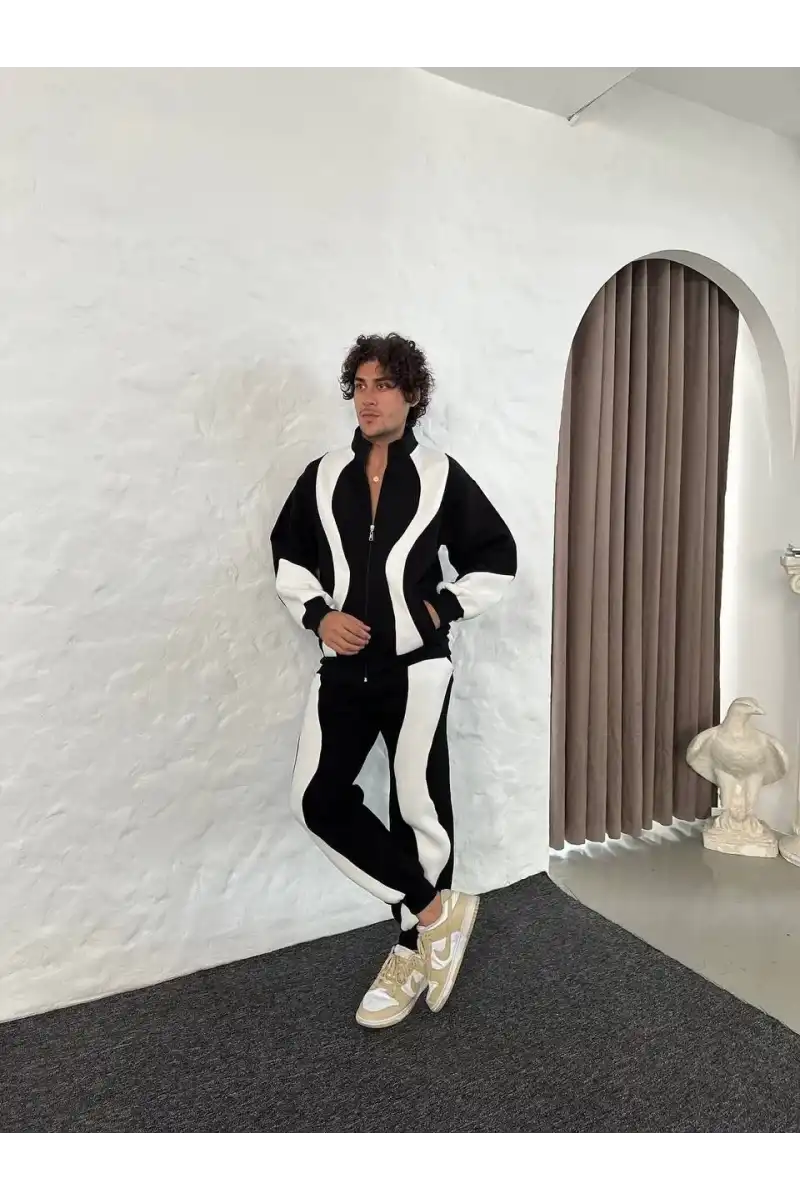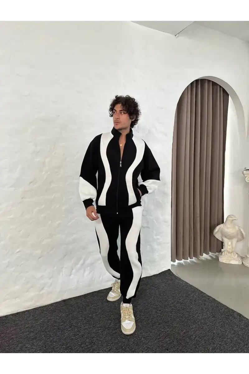 Erkek Premium Parçalı Eşofman Takım - Dik Yaka Fermuarlı Sweatshirt, - Siyah