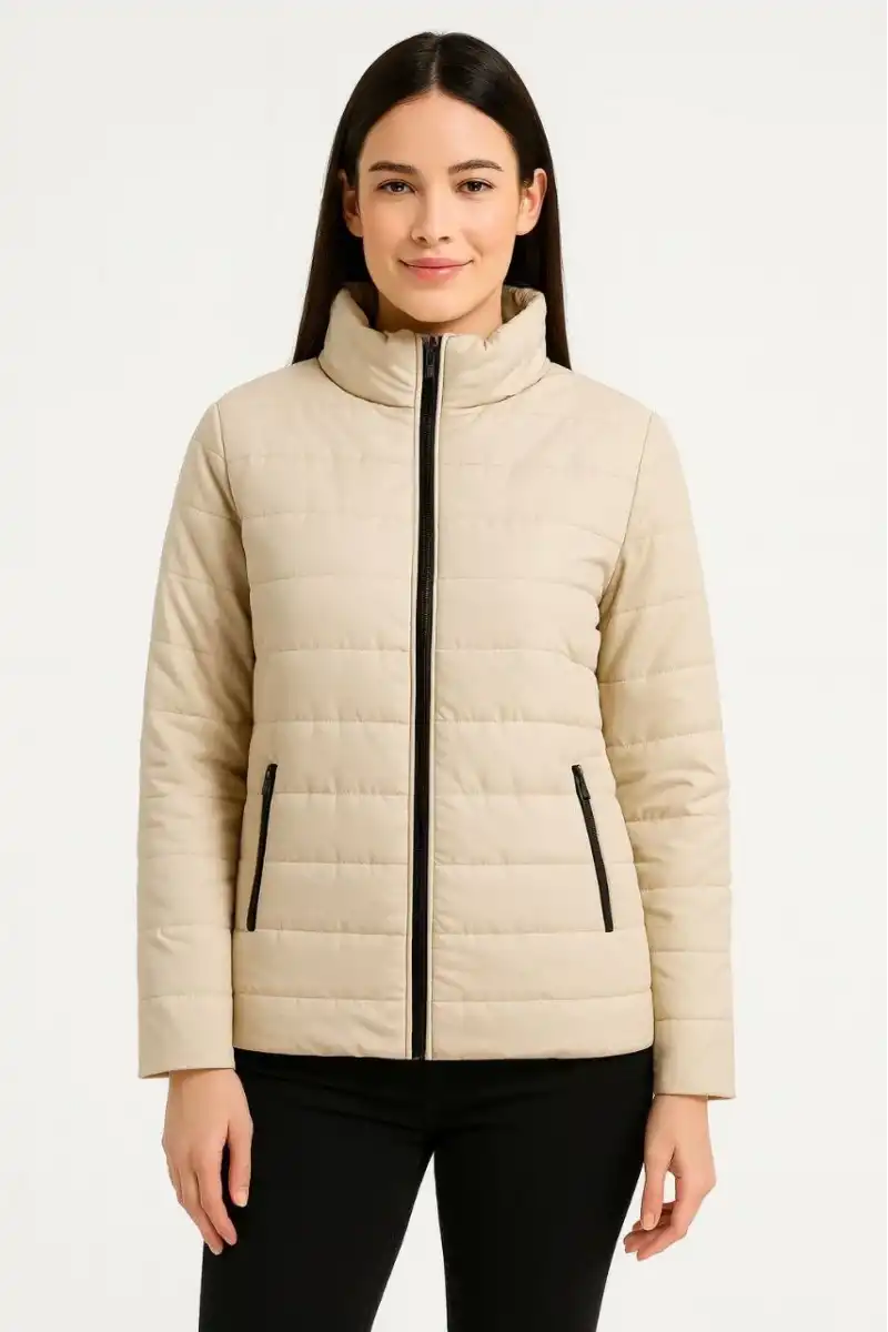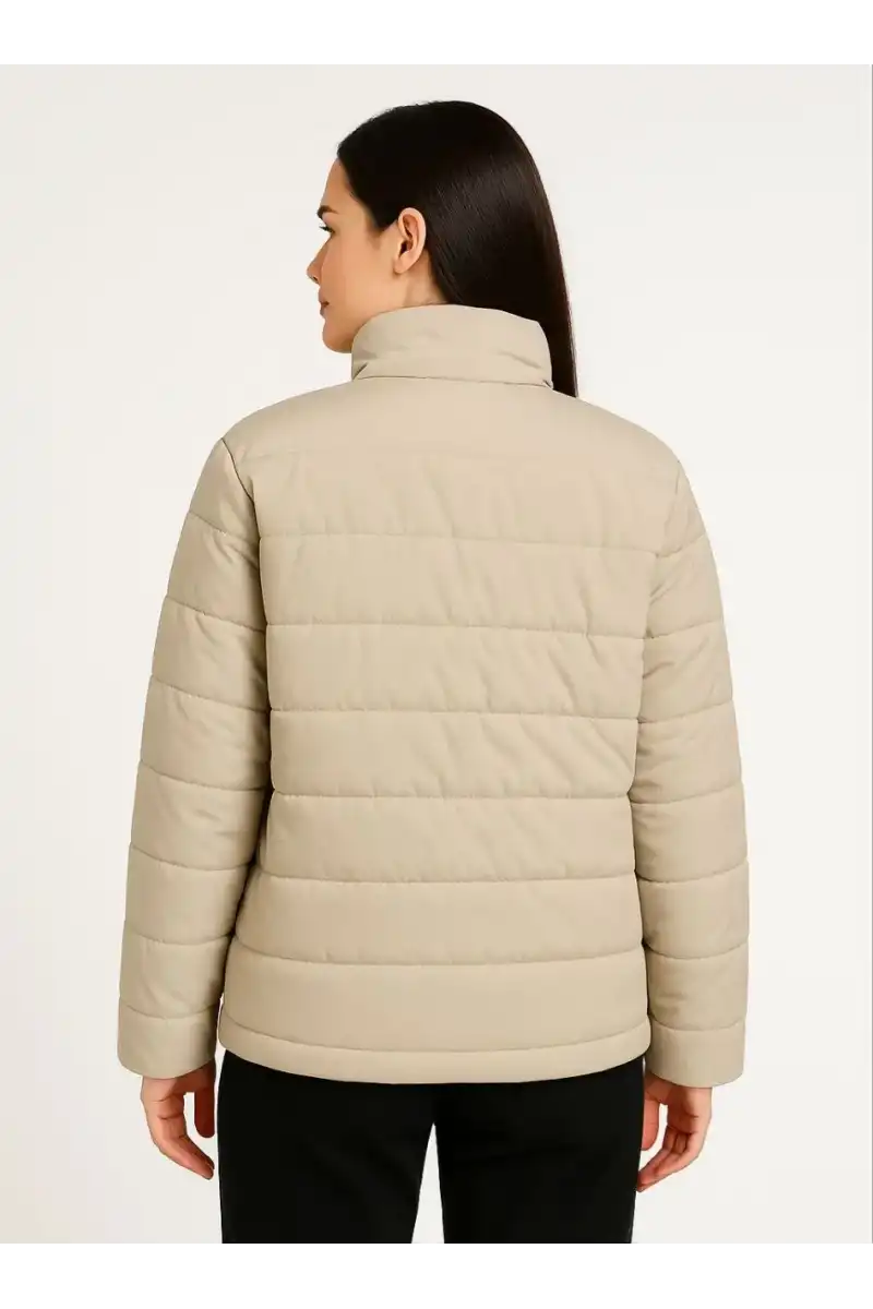 Kadın Bomber Mont Ceket – Su İtici Kumaş, Kapitone Astarlı, Fermuarlı, Kışlık - Bej