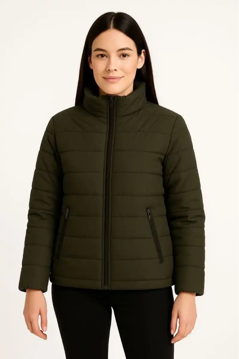 Kadın Bomber Mont Ceket – Su İtici Kumaş, Kapitone Astarlı, Fermuarlı, Kışlık - Haki