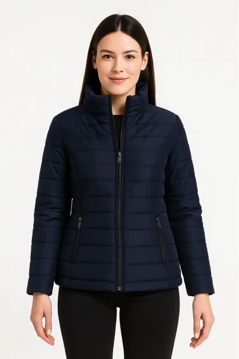 Kadın Bomber Mont Ceket – Su İtici Kumaş, Kapitone Astarlı, Fermuarlı, Kışlık - Lacivert