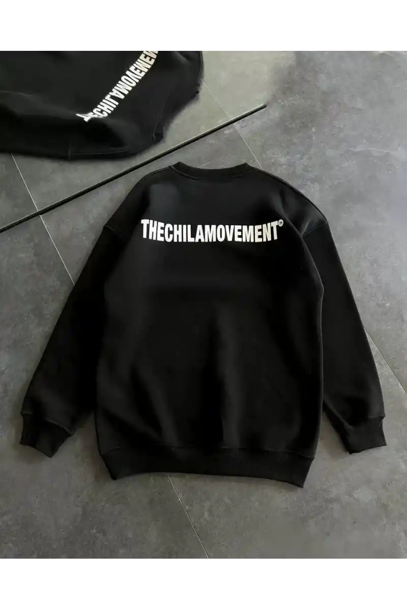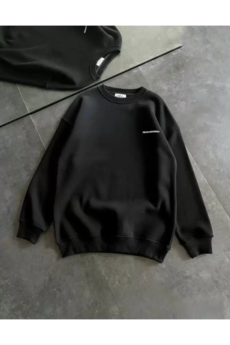 Kışlık Bisiklet Yaka Oversize Baskılı SweatShirt - Siyah