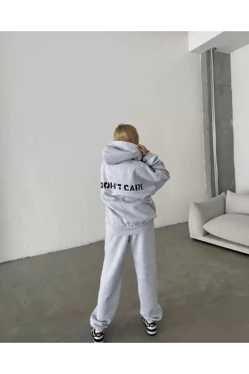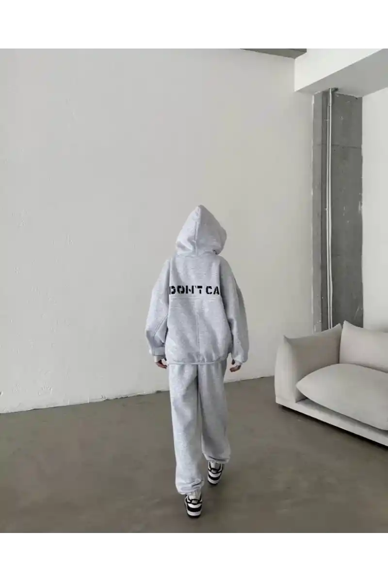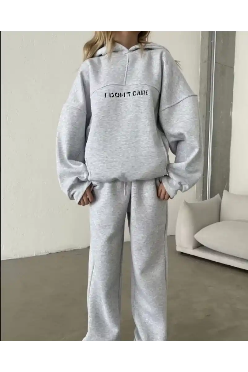 Nakış İşlemeli Üç İplik Sweat Takım- Gri