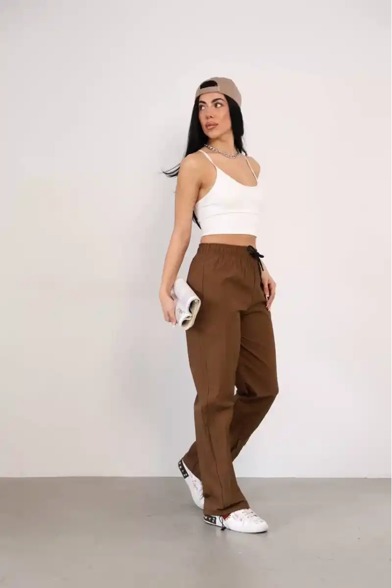 Praşut Kumaş Paça Cepli Baggy Eşofman - Kahve