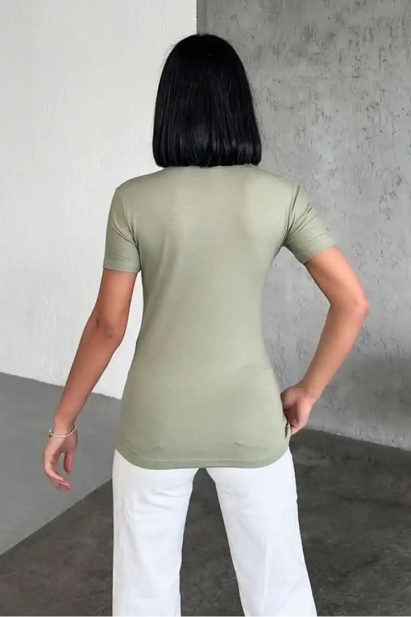 -Şimdi, gardırobunuzun olmazsa olmaz parçalarından biri olmaya aday bu kısa kollu bisiklet yaka likralı haki viskon penye body'yi hemen satın alın ve her zaman rahat ve şık bir görünüme sahip olun!