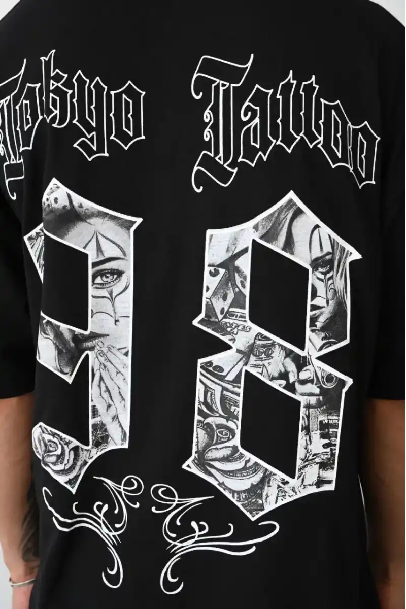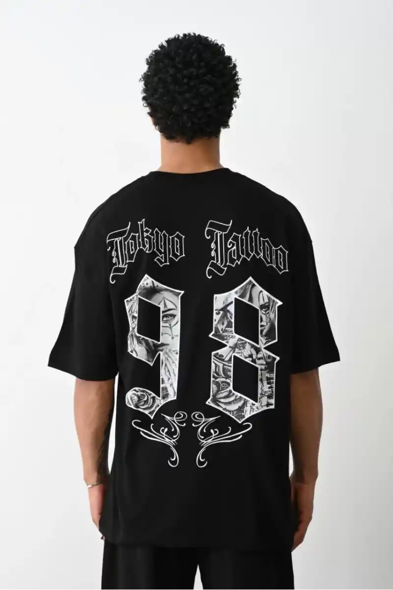 Unisex Baskılı Oversize T-Shirt - Siyah