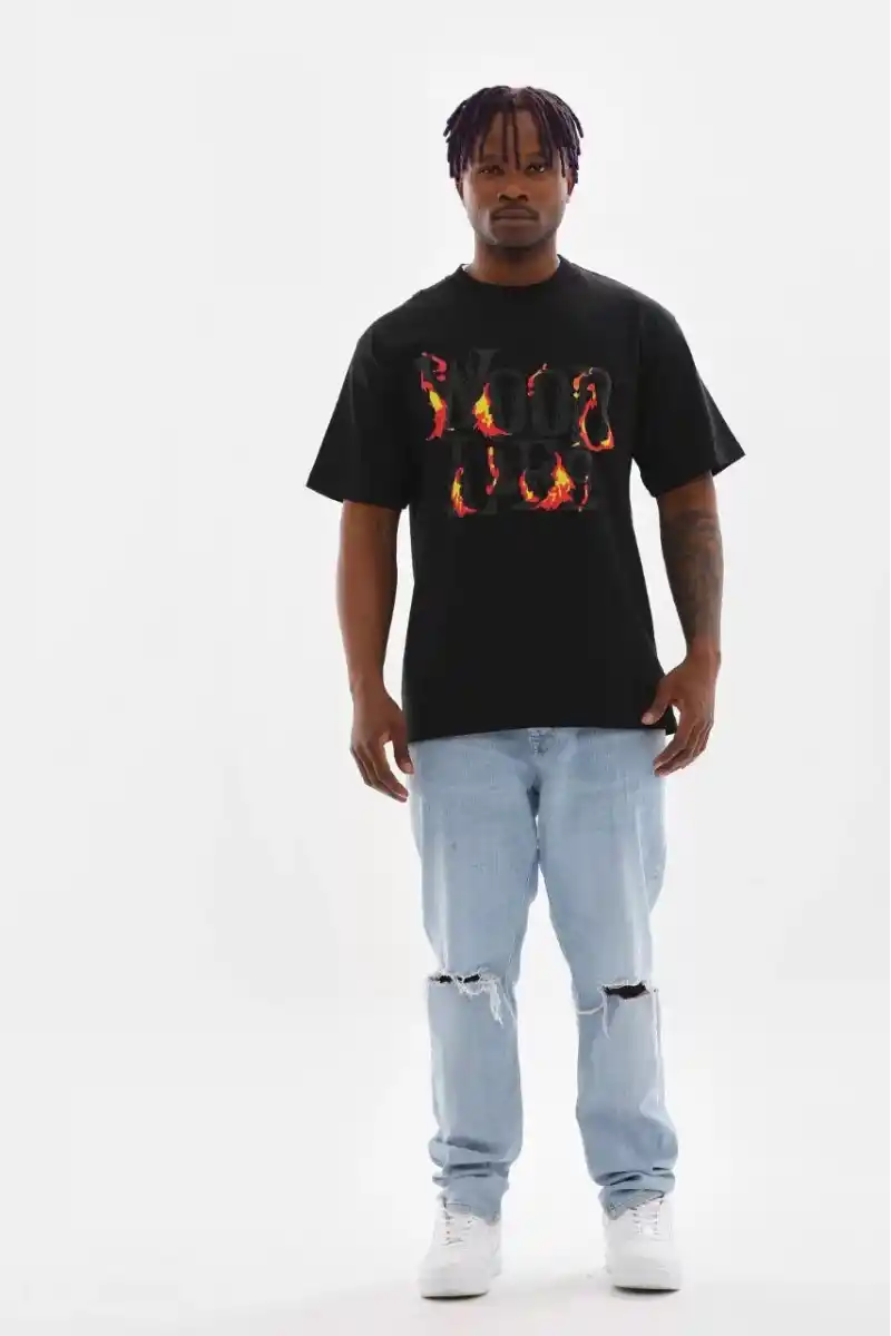 Unisex Baskılı Oversize T-Shirt - Siyah