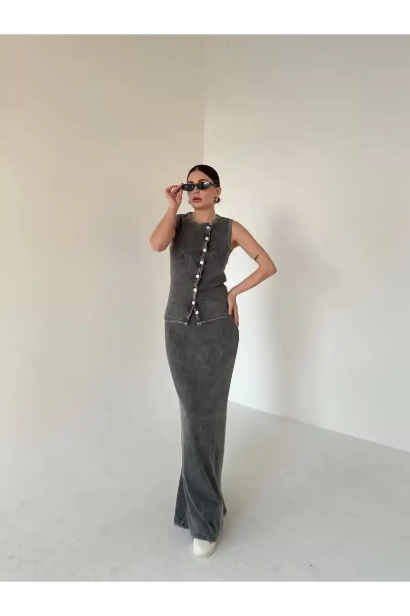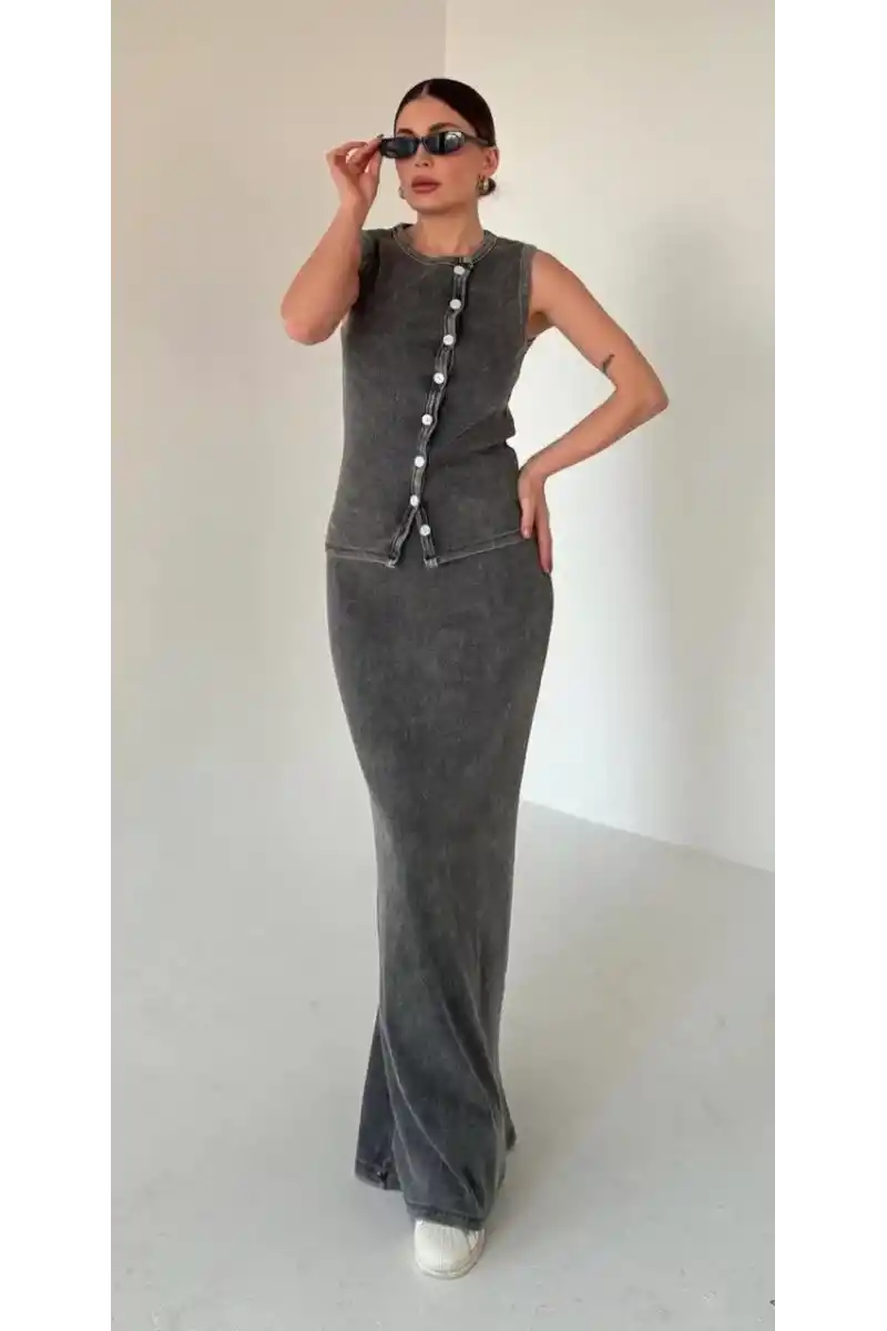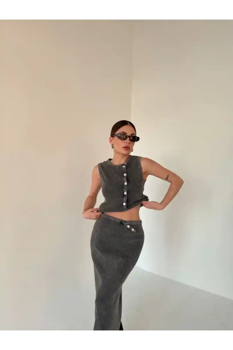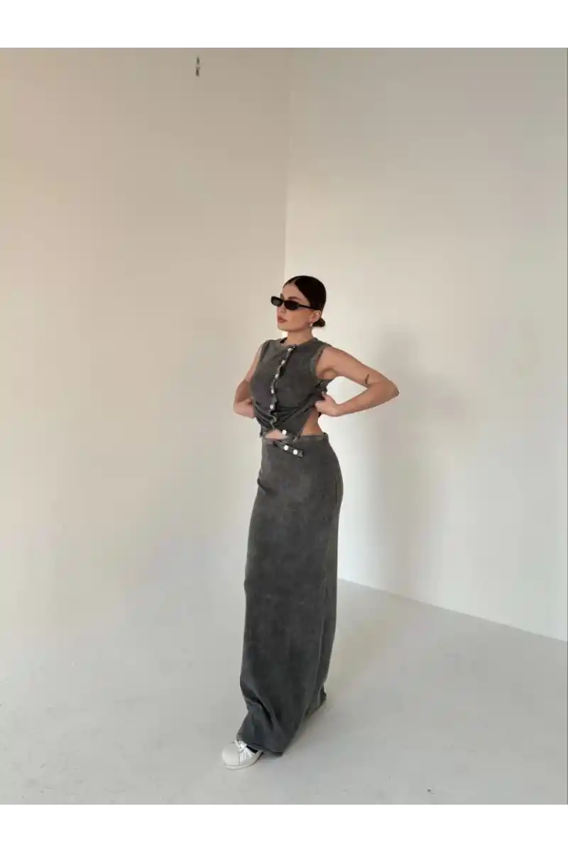 | Etek Detay | Belinde düğme aksesuar detaylı |