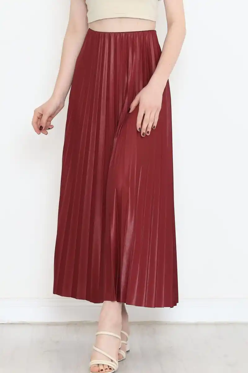 -Pileli detaylar, eteğe hareket ve hacim katarken aynı zamanda feminen bir dokunuş sağlar. Bu detaylar, eteğin tarzını ve çekiciliğini artırır, böylece her kombinde dikkat çekici bir seçenek haline gelir. Bordo rengi, sıcaklık ve zarafeti bir araya getirerek her mevsimde kullanılabilen bir renktir.