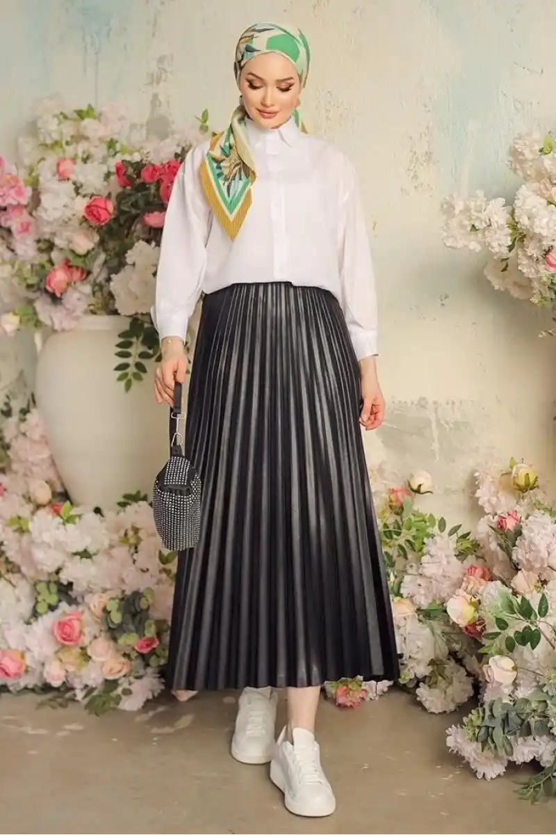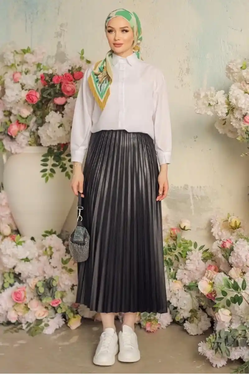 Sonuç olarak, pileli parlak krep gizli lastikli siyah etek, şıklığı ve rahatlığı bir araya getirerek her zaman tarzınızı ön plana çıkarır. Modern tasarımı ve özel detaylarıyla dikkat çeken bu etek, her kombinde göz alıcı bir seçenektir.