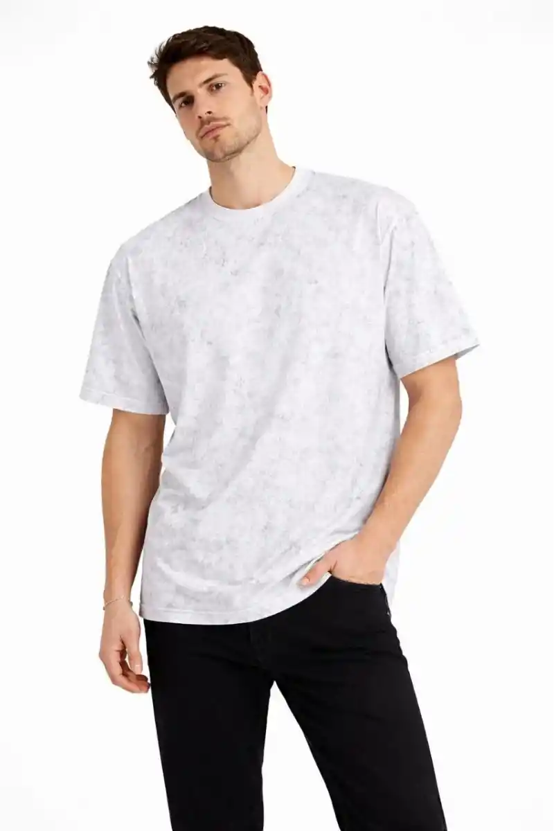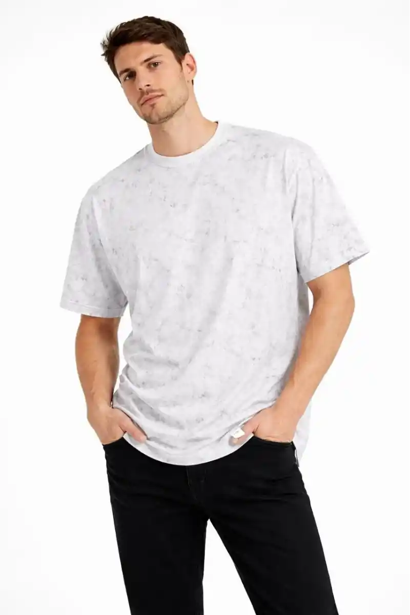 Erkek Asit Yıkama Bisiklet Yaka Kısa Kollu Oversize T-Shirt Tişört - Beyaz