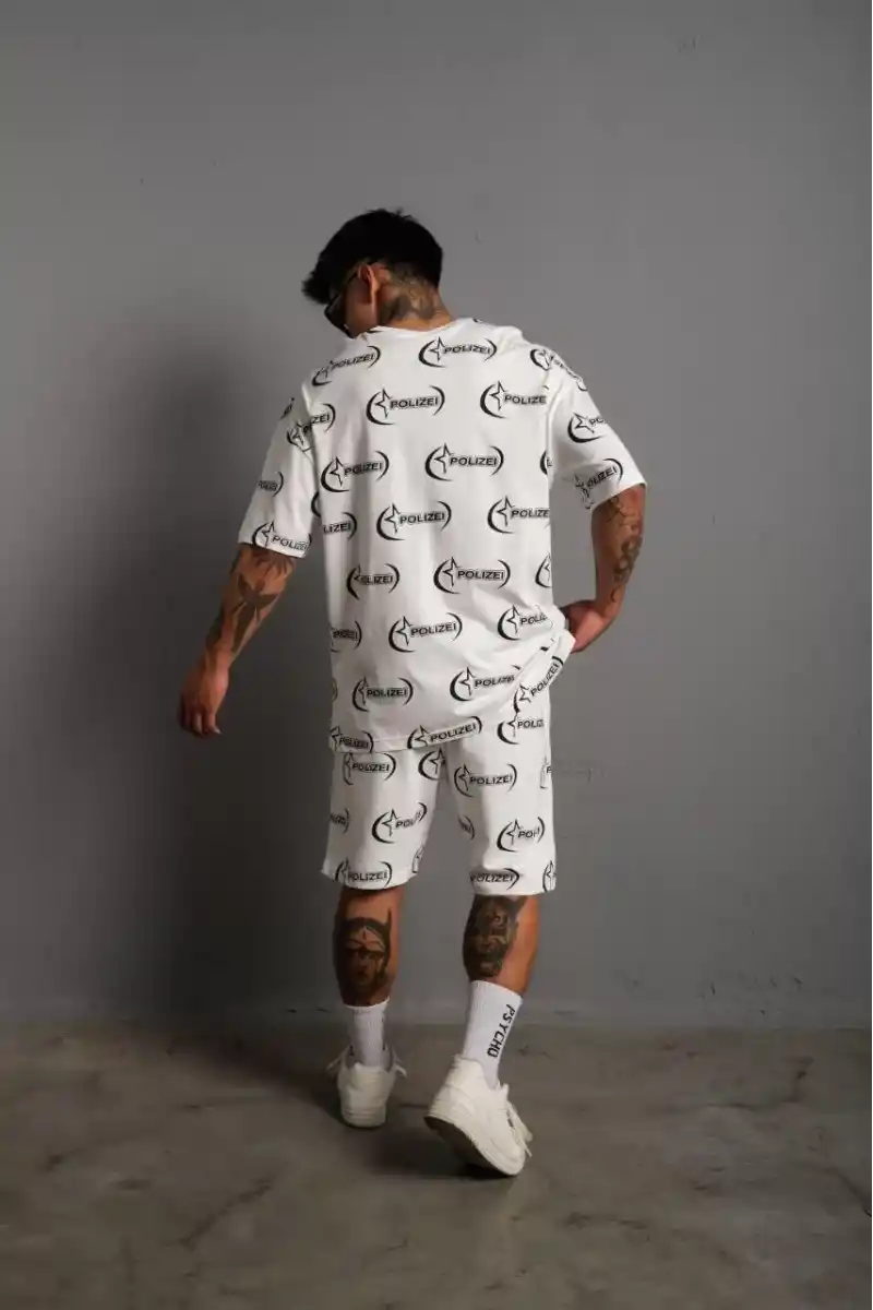 Erkek Baskılı İkili Şortlu Takım - Beyaz