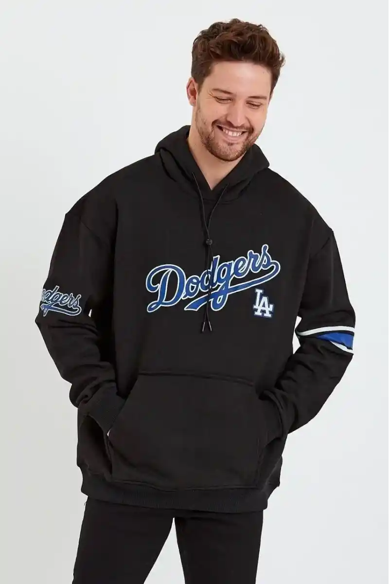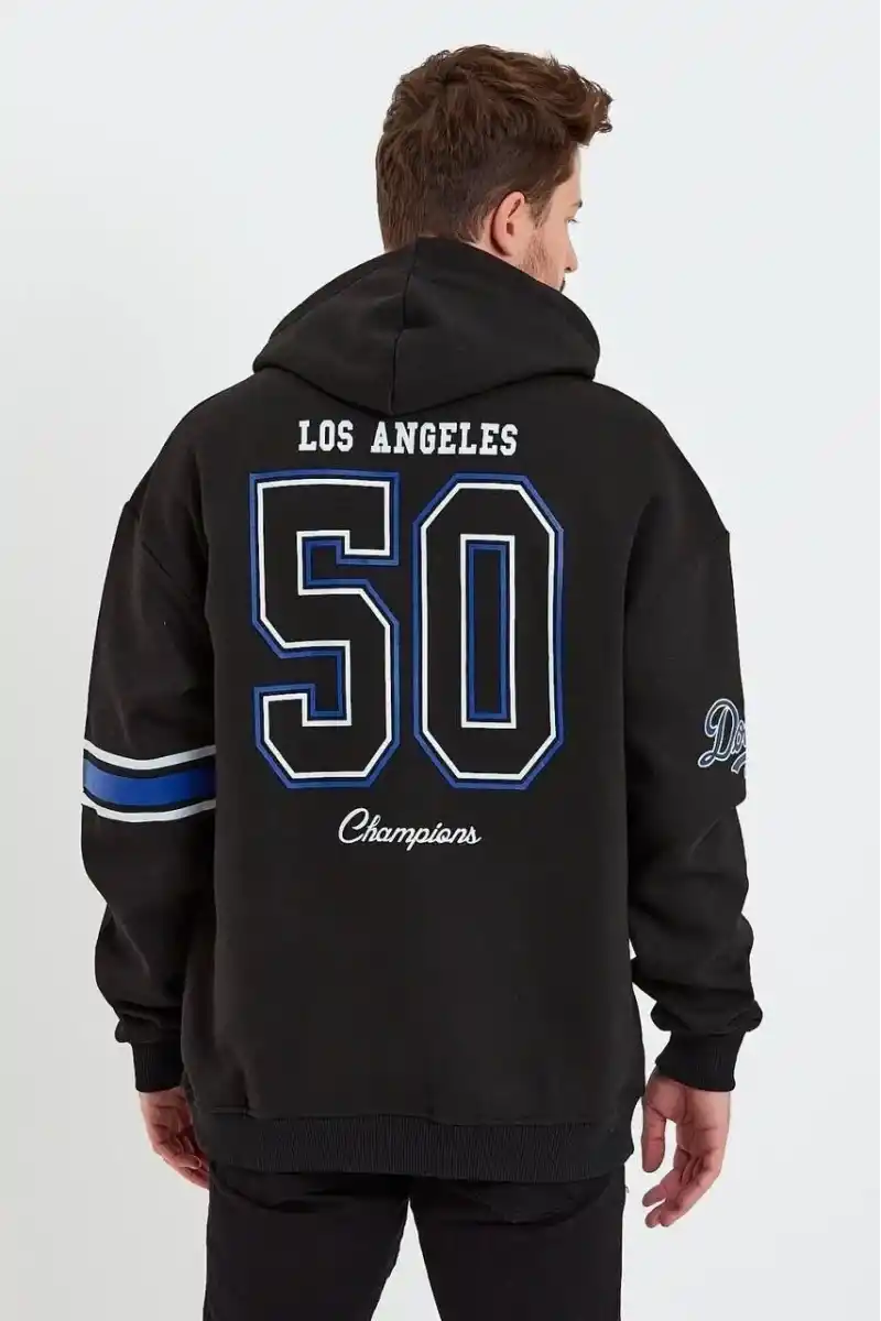 Erkek Baskılı Kapşonlu Üç iplik Oversize Sweatshirt - Siyah