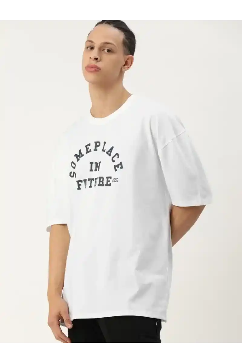 Erkek Baskılı Oversize T-shirt - Beyaz