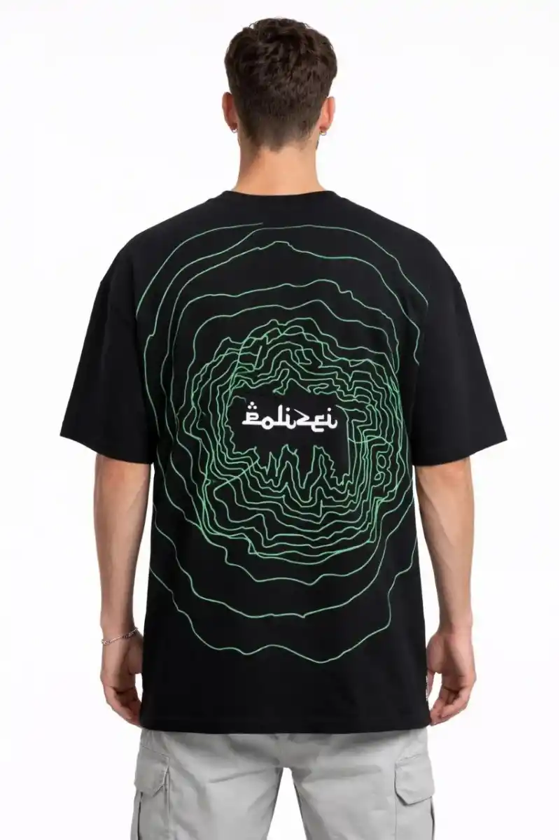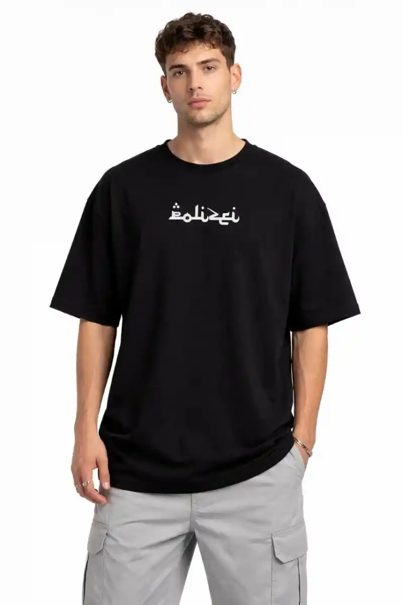 Erkek Bisiklet Yaka Baskılı Kısa Kollu Tişört Streetwear Günlük Basic Pamuklu T-shirt - Siyah