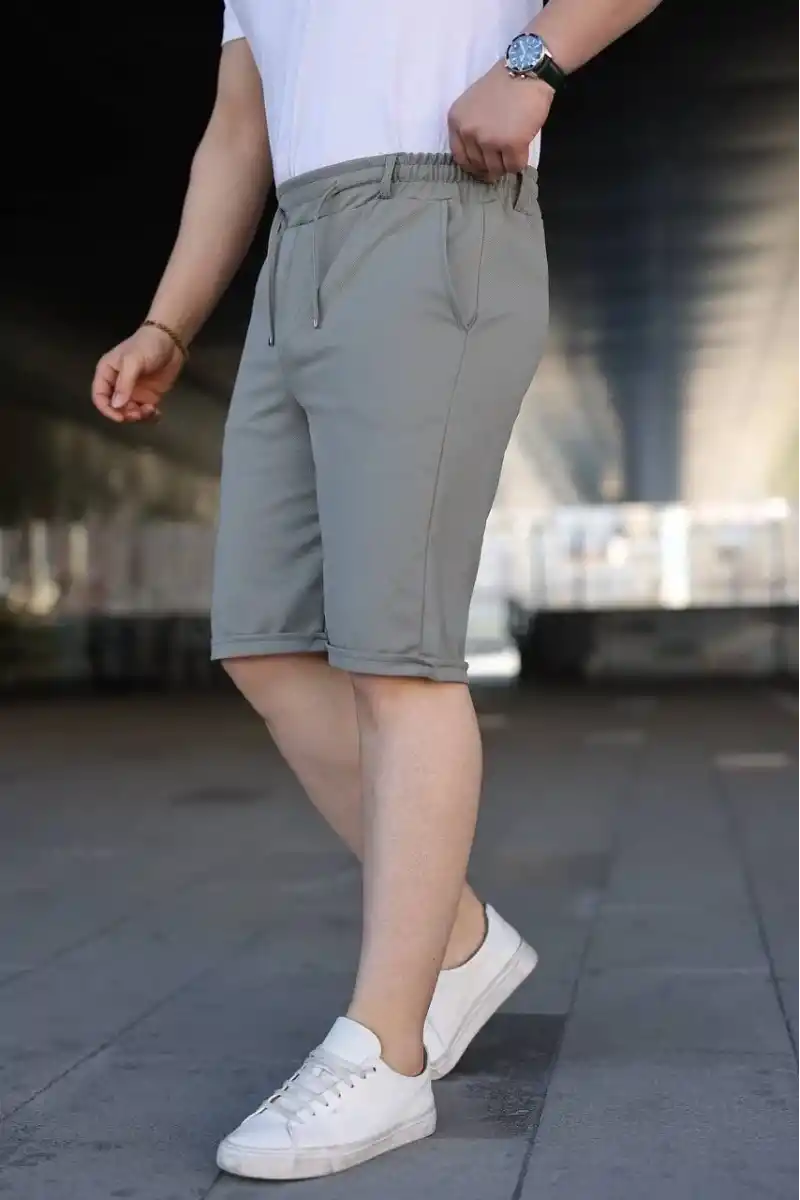 Erkek Diagonel Kumaş Duble Paça Cepli Bağcıklı Bel Lastikli ŞORT - Mint Yeşili