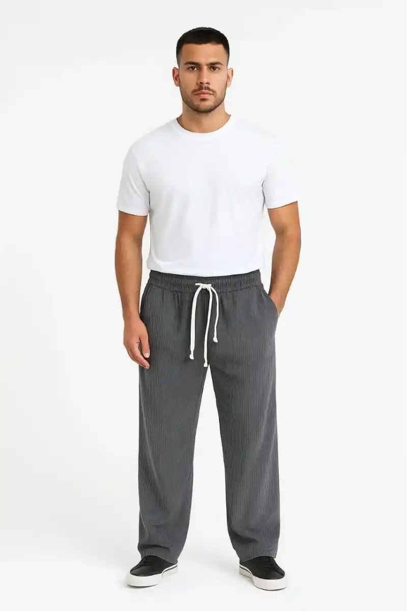 Erkek Fitilli Kadife Cepli Buggy Pantolon Oversize Rahat Kalıp - Füme