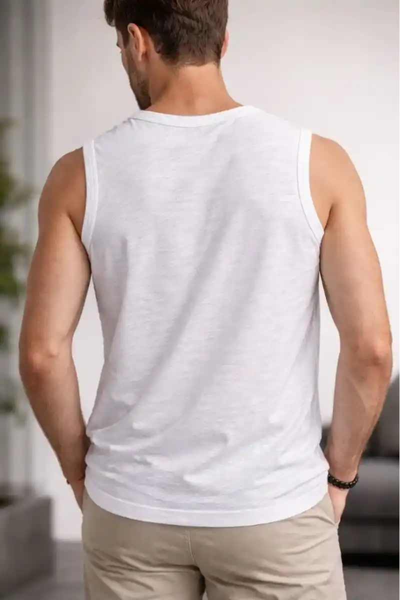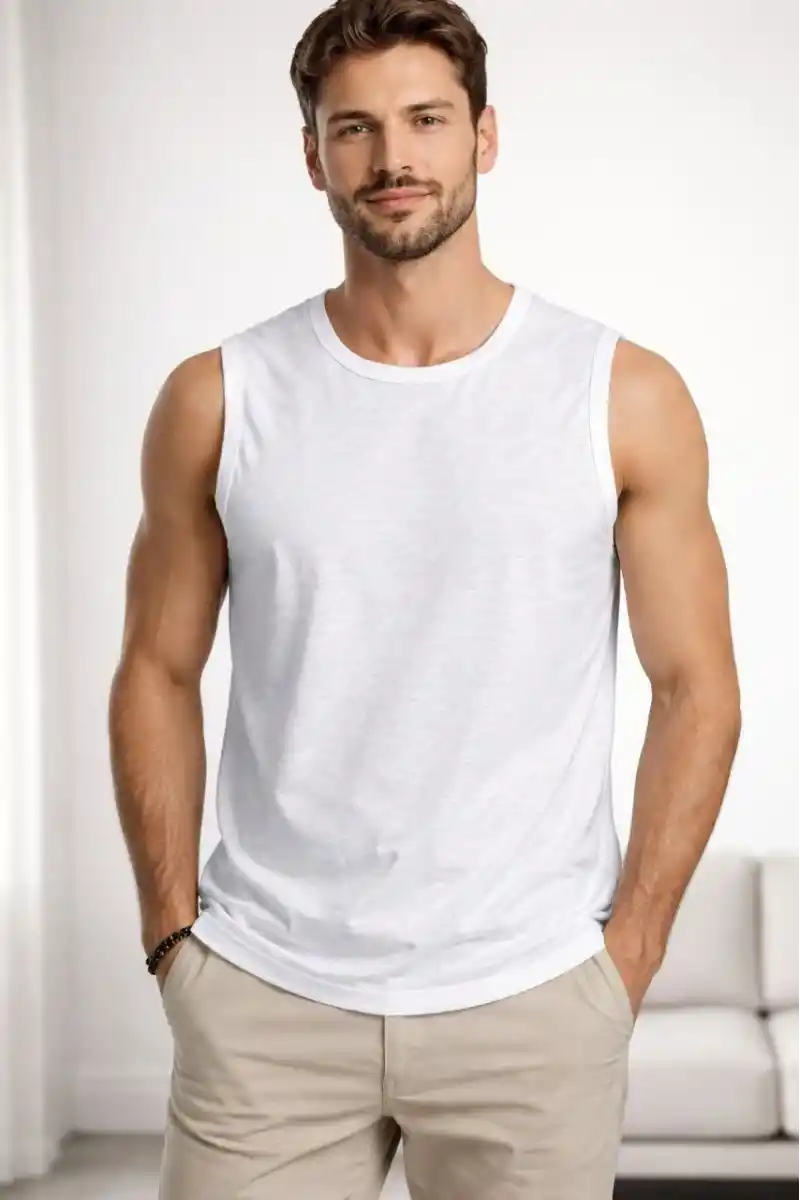 Erkek Flamlı Kumaş Sıfır Kolsuz Atlet Basic Spor Üst, Günlük ve Fitness Kullanımına Uygun - Beyaz