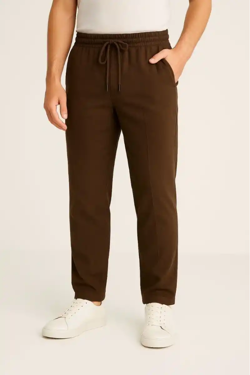 Erkek Keten Pantolon – Cepli, Beli Lastikli ve Bağcıklı, Nefes Alan Rahat Kalıp, Yazlık ve Baharlık Günlük Giyim, Şık & Konforlu Boru Paça Model - Kahverengi