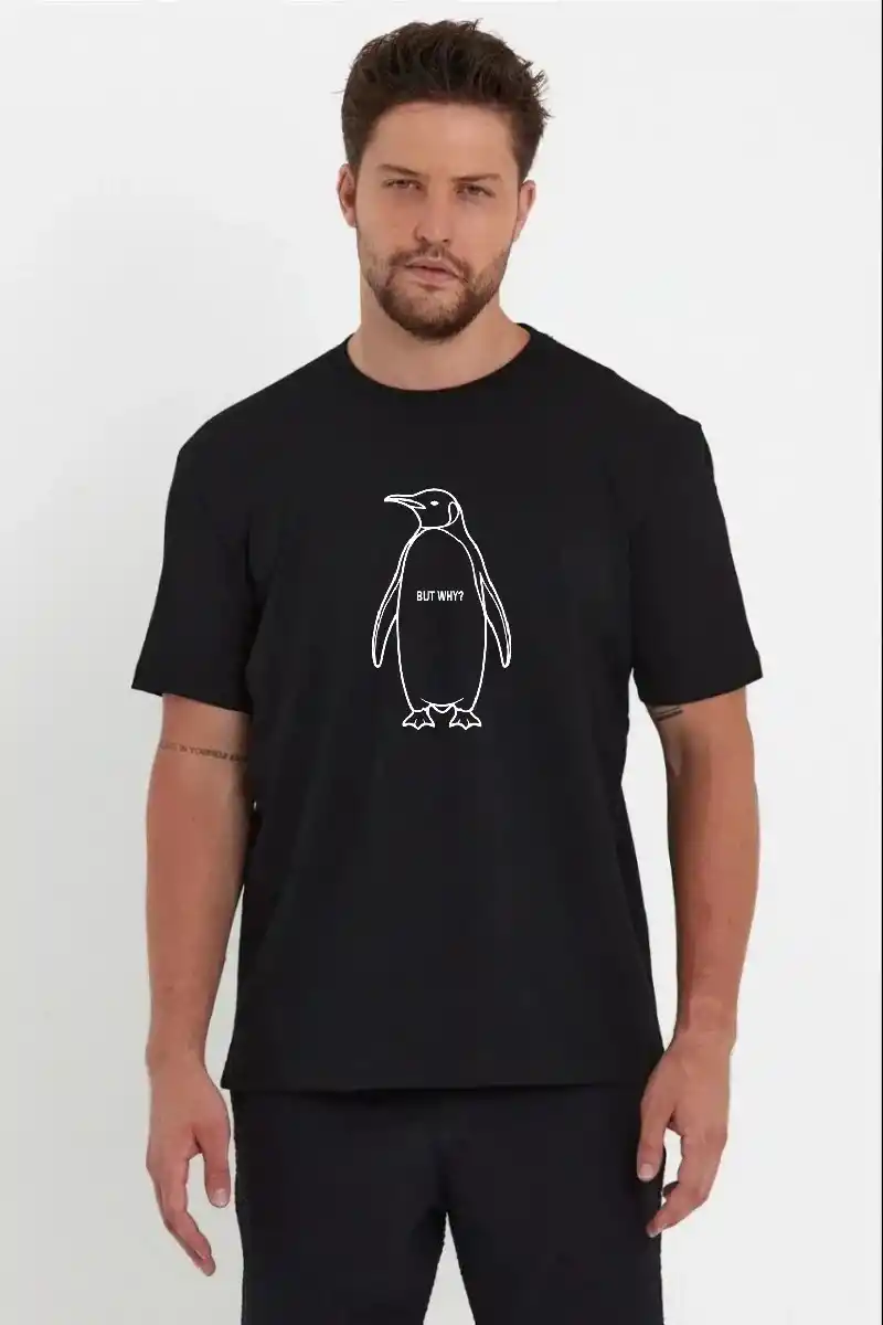 Erkek Nihilist Penguen Özel Tasarım Oversize Bisiklet Yaka Tişört - Siyah