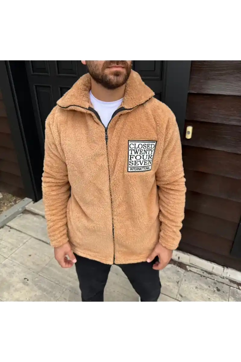 Erkek Polar Fermuarlı Sweatshirt – Kapüşonsuz, Cepli, Yumuşak Dokulu, Oversize Rahat Kalıp, Kışlık Sıcak Tutan Fermuarlı Üst - Kahverengi