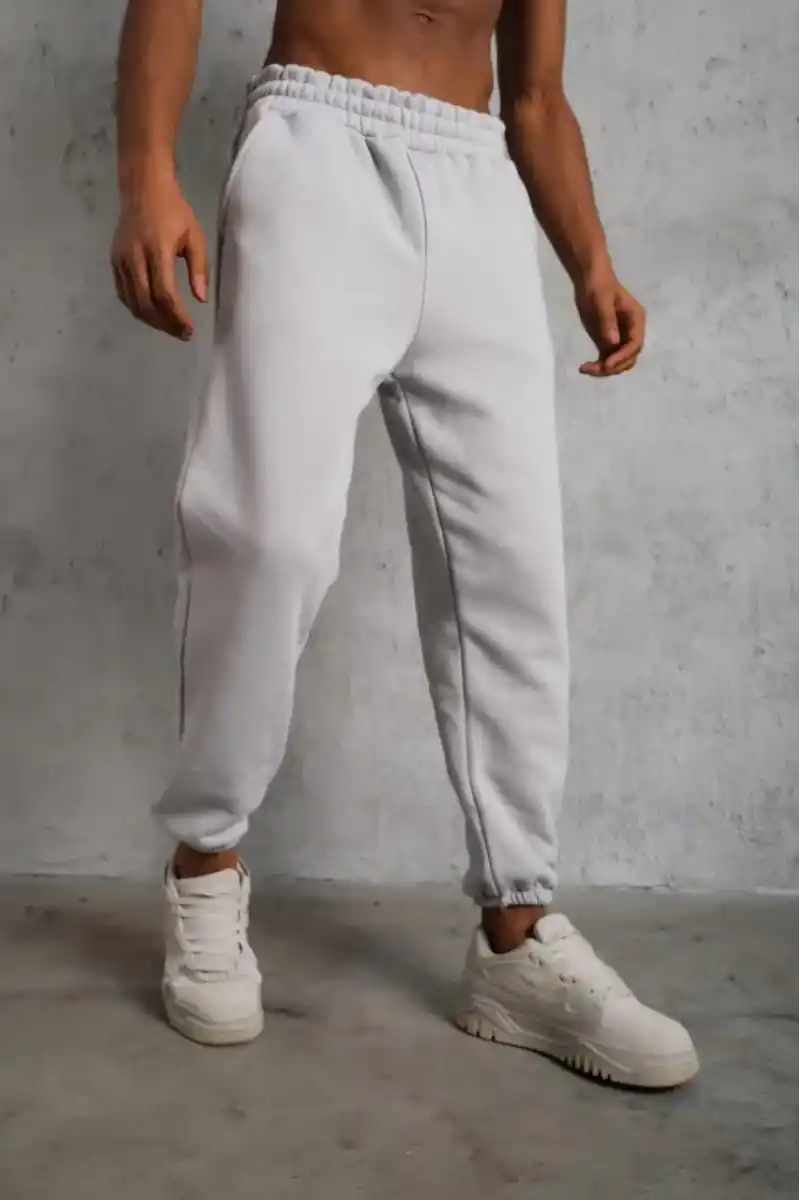 Erkek Üç İplik Alt Eşofman Lastikli - Gri
