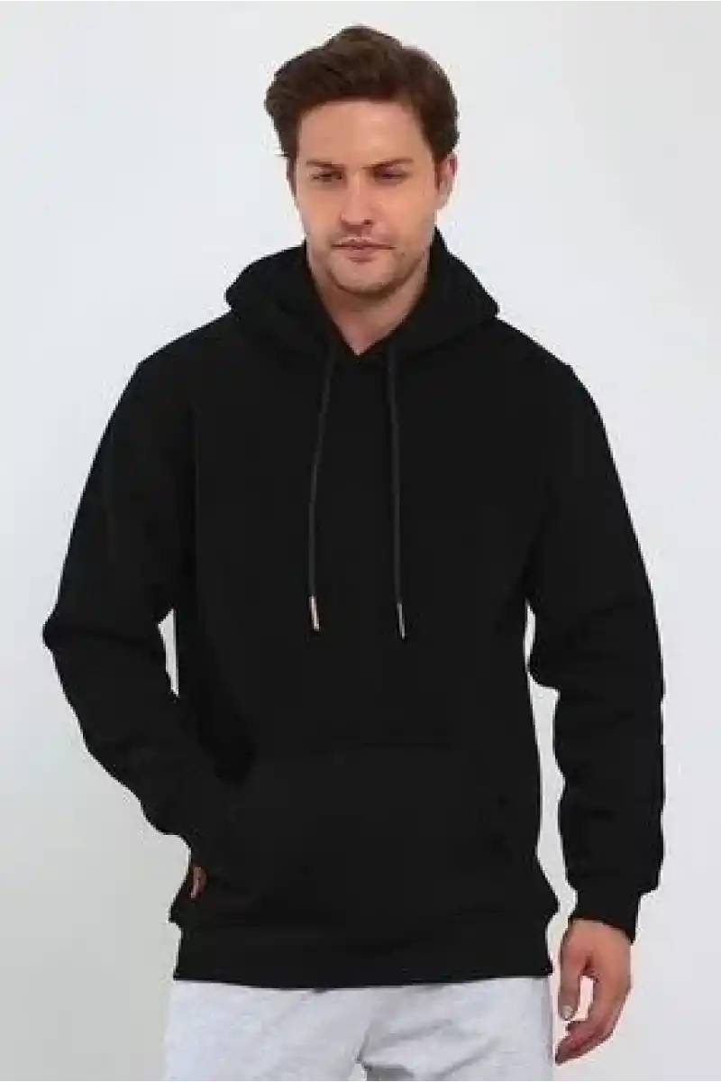 Erkek Uzun Kol Kapşonlu Basic Sweatshirt hoodie - Siyah