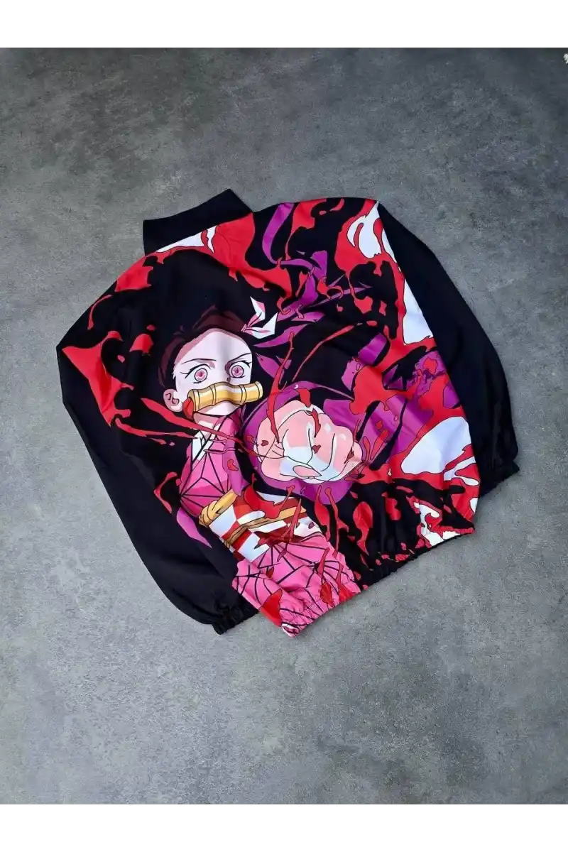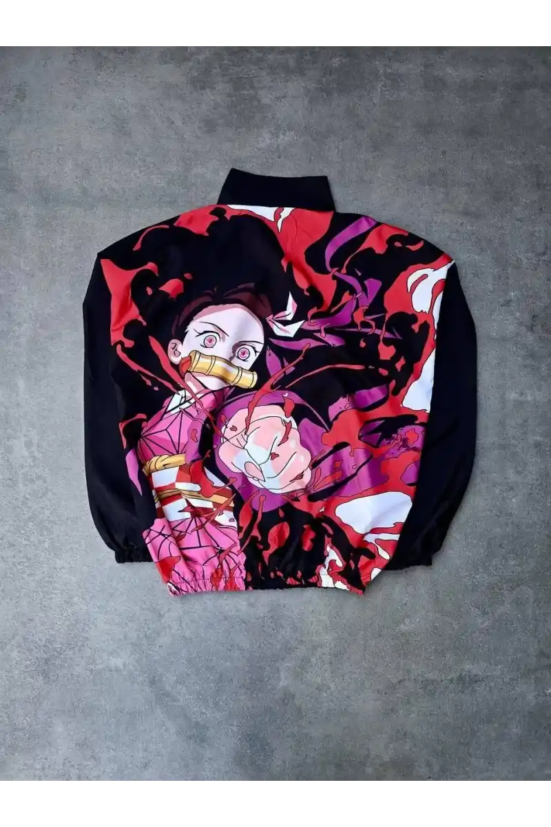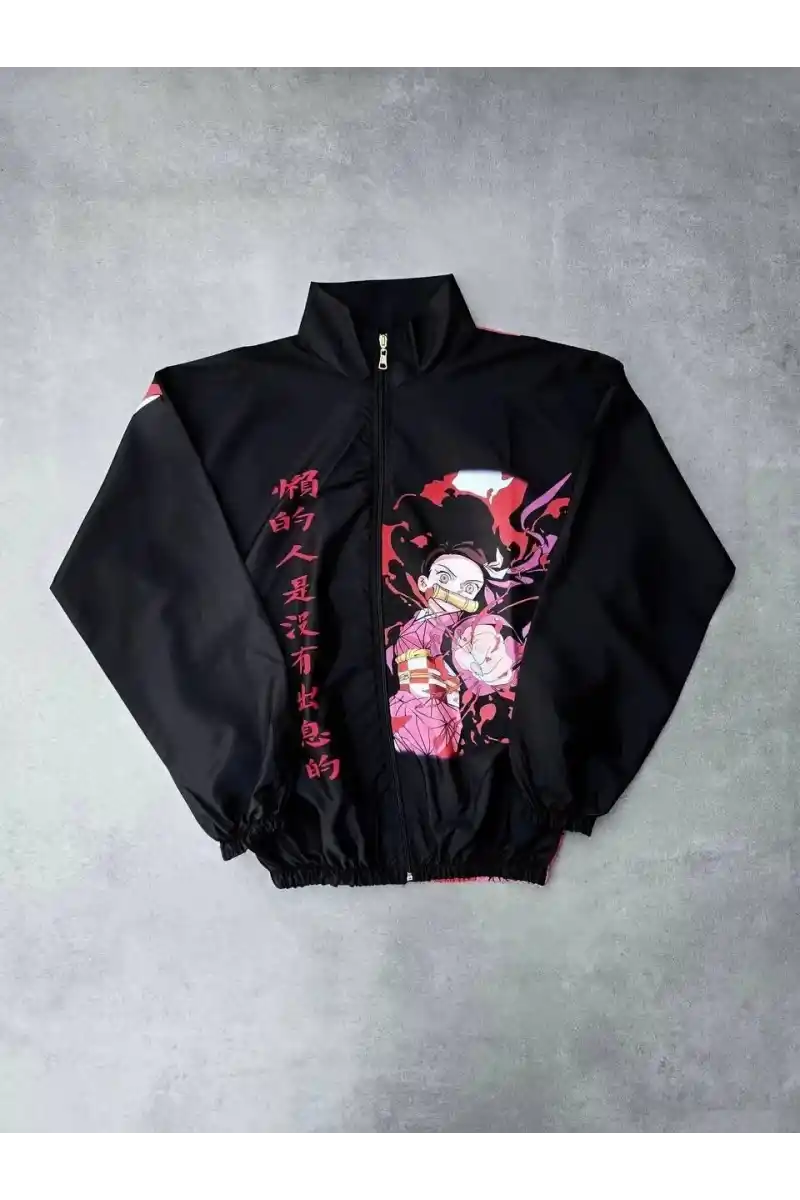 Fermuarlı Dijital Baskılı Rüzgarlık - Siyah
