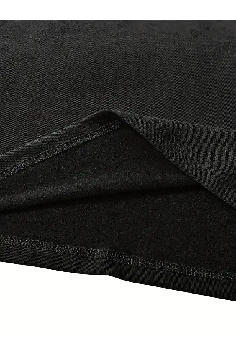 fiyonk Ön Arka baskılı siyah oversize unisex Kısa Kol t-shirt- Siyah