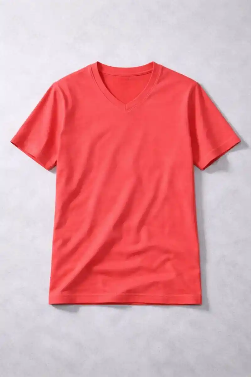 Genç Kız Çocuk V Yaka Tişört Model - Nar Çiçeği