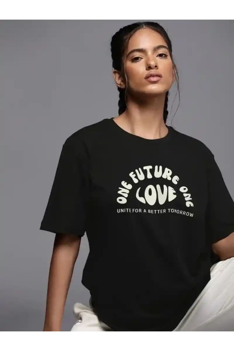 Kadın Baskılı Oversize T-shirt - Siyah
