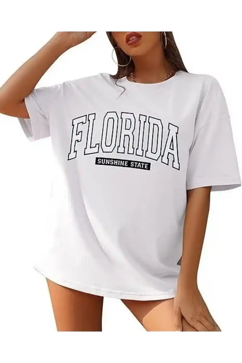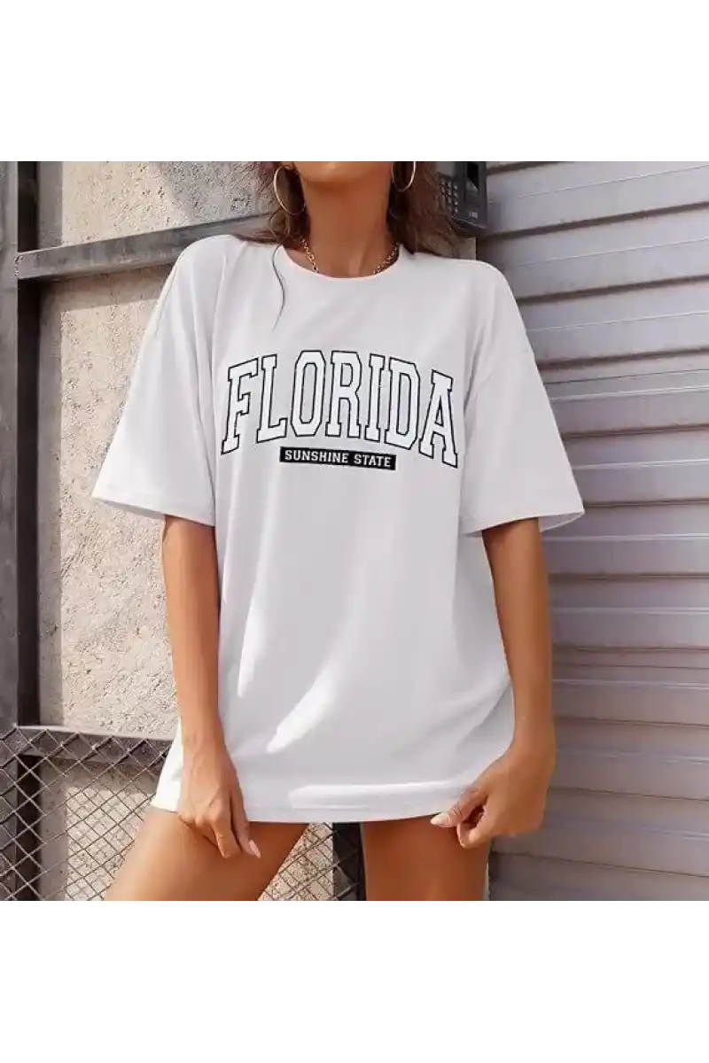 Kadın Bisiklet Yaka Baskılı T-shirt - Beyaz